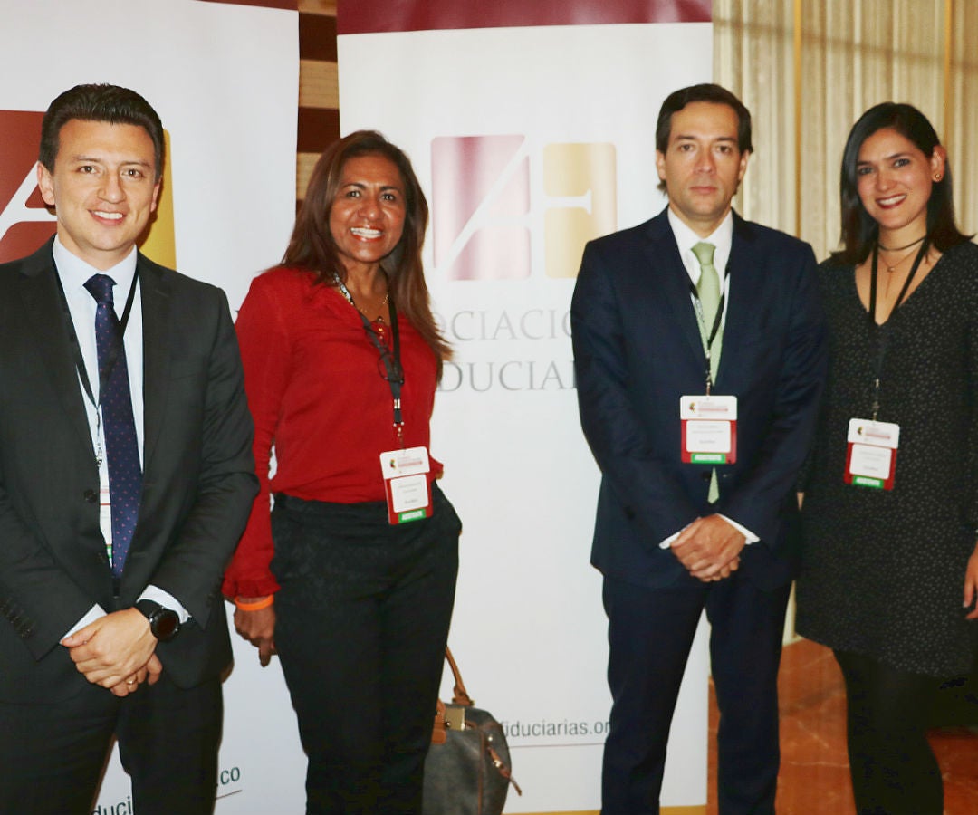 Representantes de Fiduprevisora asistieron al Sexto Congreso de Asofiduciarias. En la foto, Julián Hernández, gestor de Portafolios; Sandra Jaramillo, dir. Innovación y Desarrollo de Fiduprevisora; Paola Romero, analista Macroeconómica y Mercados; y Giovanny Peña, trader de Fondos de Inversión.