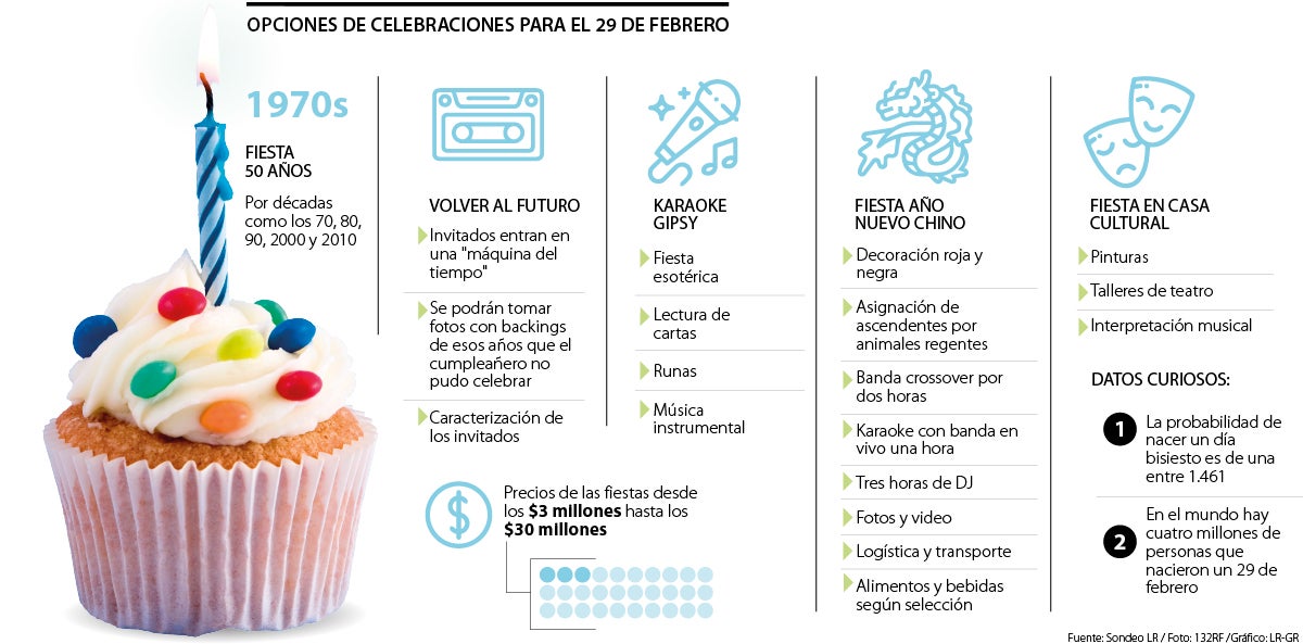 Por ejemplo, esta empresa ofrece para los cumpleañeros ‘bisiestos’ una fiesta con temática de ‘Volver al Futuro’ con el icónico carro Delorean. En esta, los invitados se podrán tomar fotos con backings de esos años que el cumpleañero no pudo celebrar (porque no existieron en el calendario), además se caracterizará a los invitados.