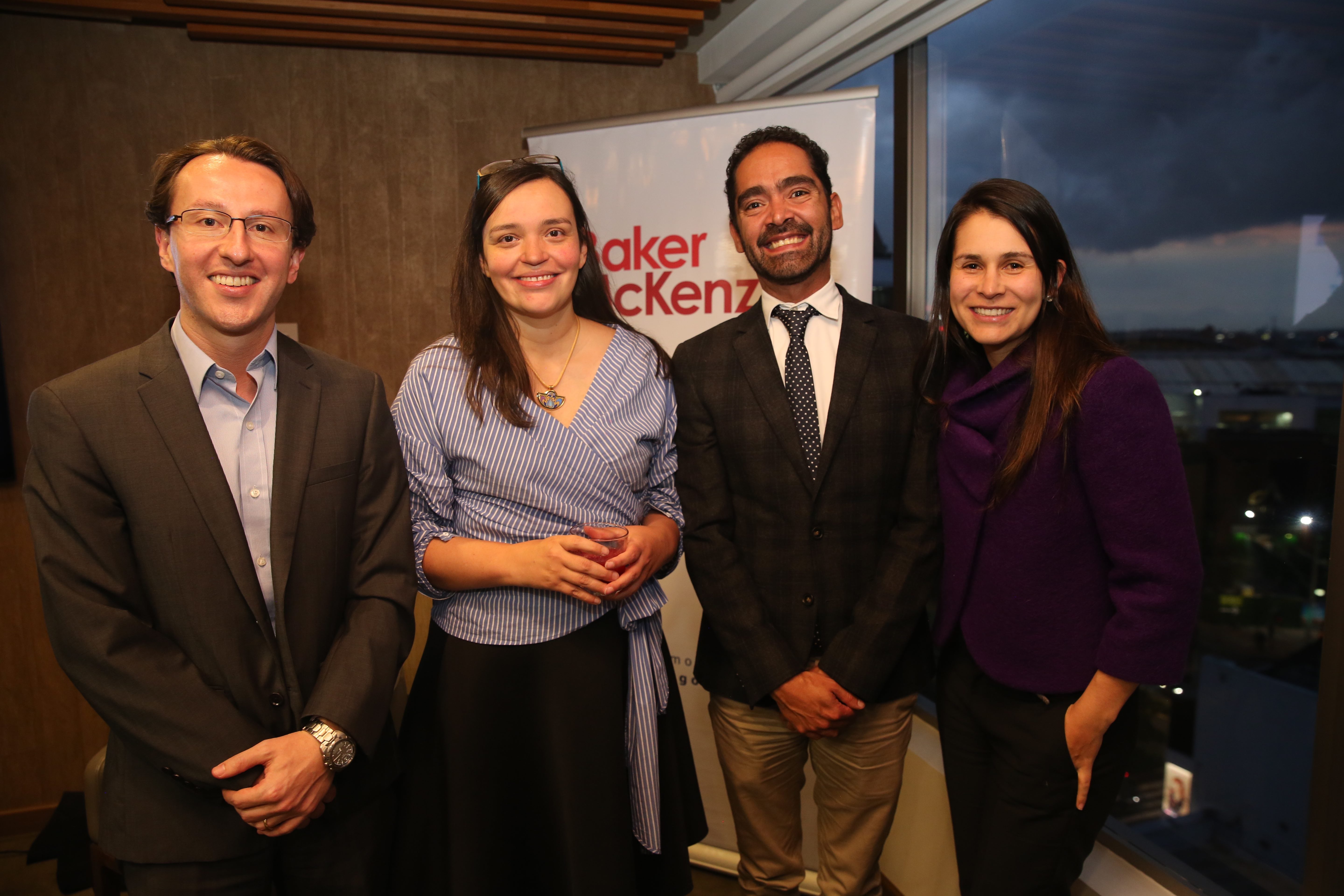 Jorge Valencia, asociado del Grupo de Práctica de Resolución de Conflictos de Baker McKenzie; Diana Correa, representante para Latinoamérica de la ICC; Juan Guillermo Otero, director del Grupo de Práctica de Resolución de Conflictos de Baker McKenzie; y Cristina Mejía, socia del Grupo de Práctica de Resolución de Conflictos de Baker McKenzie.
