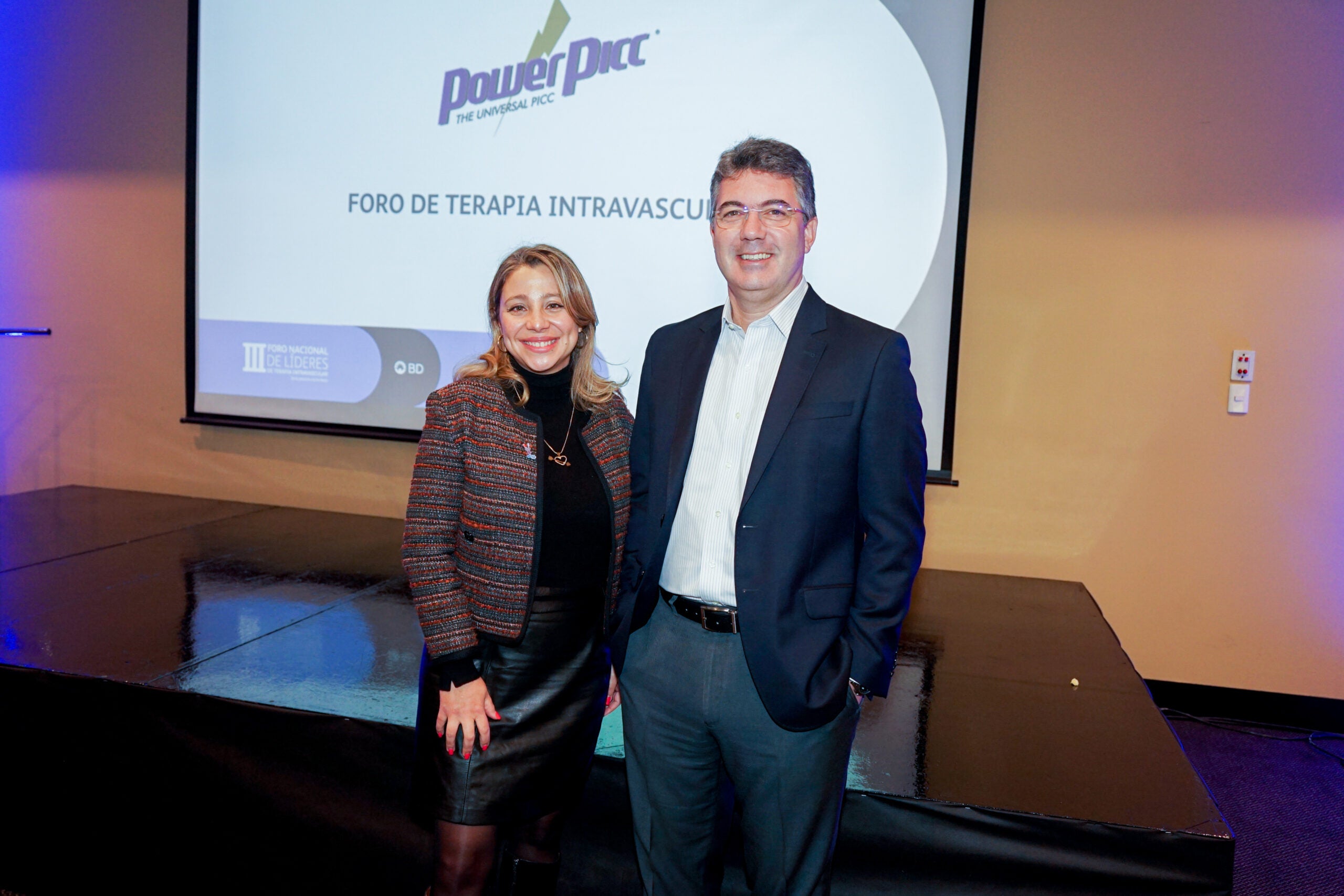 Foto: Desirée Torres, gerente Unidad de Negocio Medical Delivery Solutions BD; y Rogerio Sperb, director General BD para la región Andina.