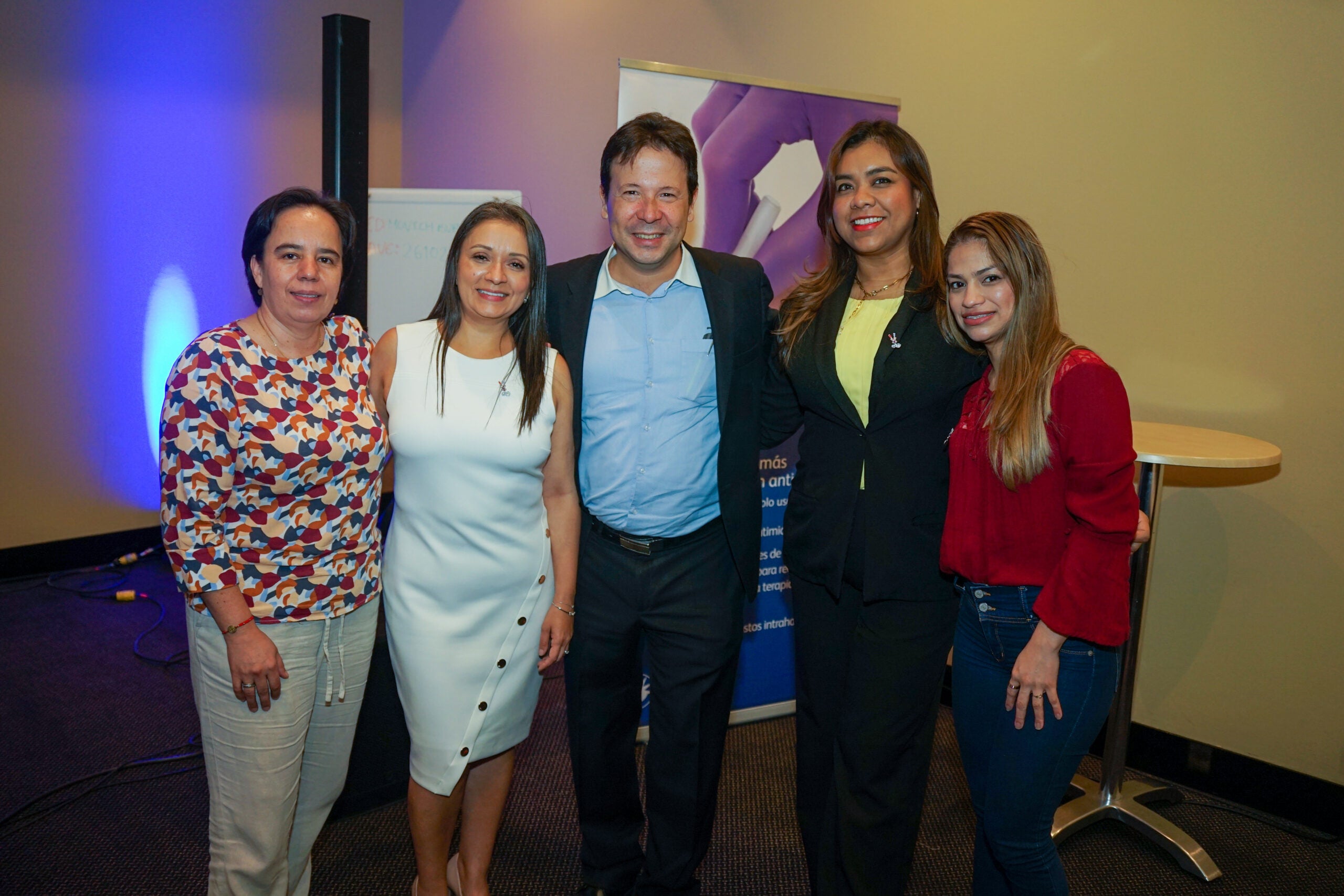 Foto: Ana Milena Rojas, coordinadora UCI pediátrica Hospital Universitario; Mónica Elorza, líder clínico BD; Agustín Contreras, presidente de Achop; Johanna Rivas, Intensivista Clínica Mar Caribe; y Cindy Gómez, líder programa accesos vasculares Clínica Mar Caribe.