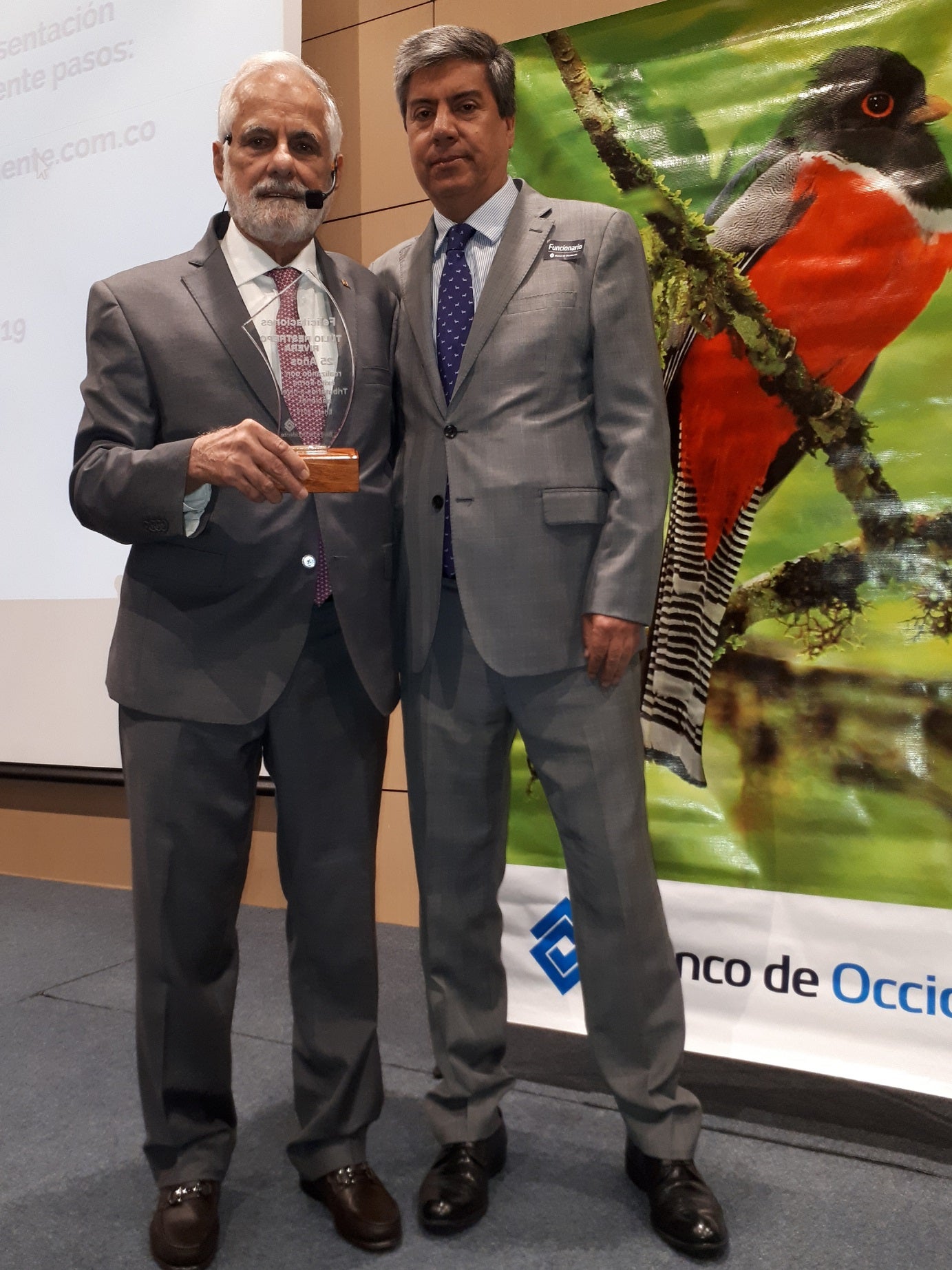 Francisco Javier Monroy, vicepresidente del Banco de Occidente, y Tulio Restrepo Rivera, conferencista y homenajeado por los 25 años dictando la charla al Banco de Occidente “Actualidad Tributaria”.