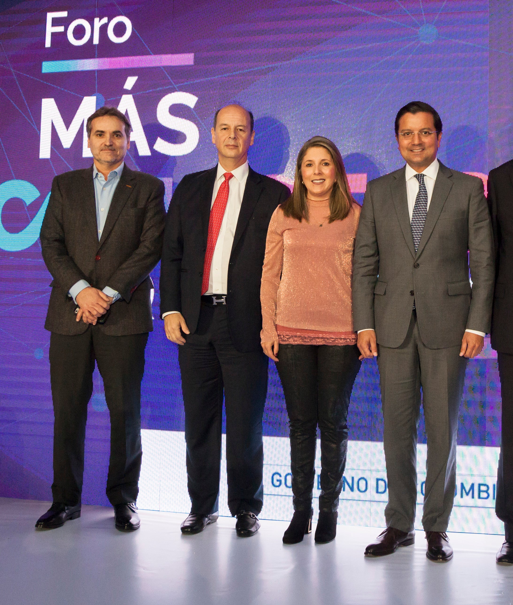 Sergio Quijano, gerente general del Diario La República; William Corredor, presidente de Open Systems; Paola Restrepo, presidenta de Fedesoft; y David Luna, ministro TIC.