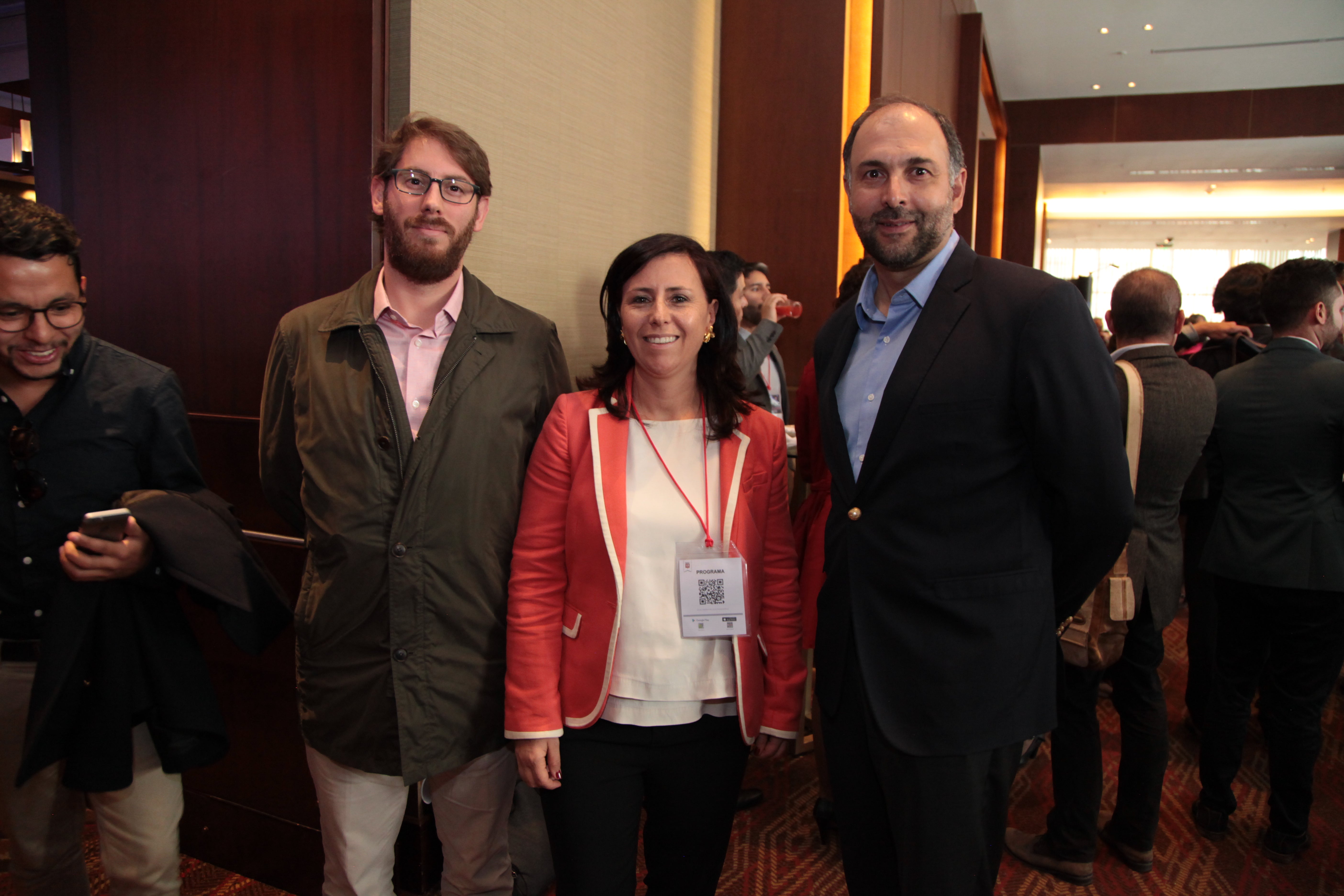 Andrés Toro, de Endeavor; con Adriana Suárez, directora de Endeavor; y Pedro Pablo Morcillo, de Infometrics durante el Foro LR realizado en Bogotá.