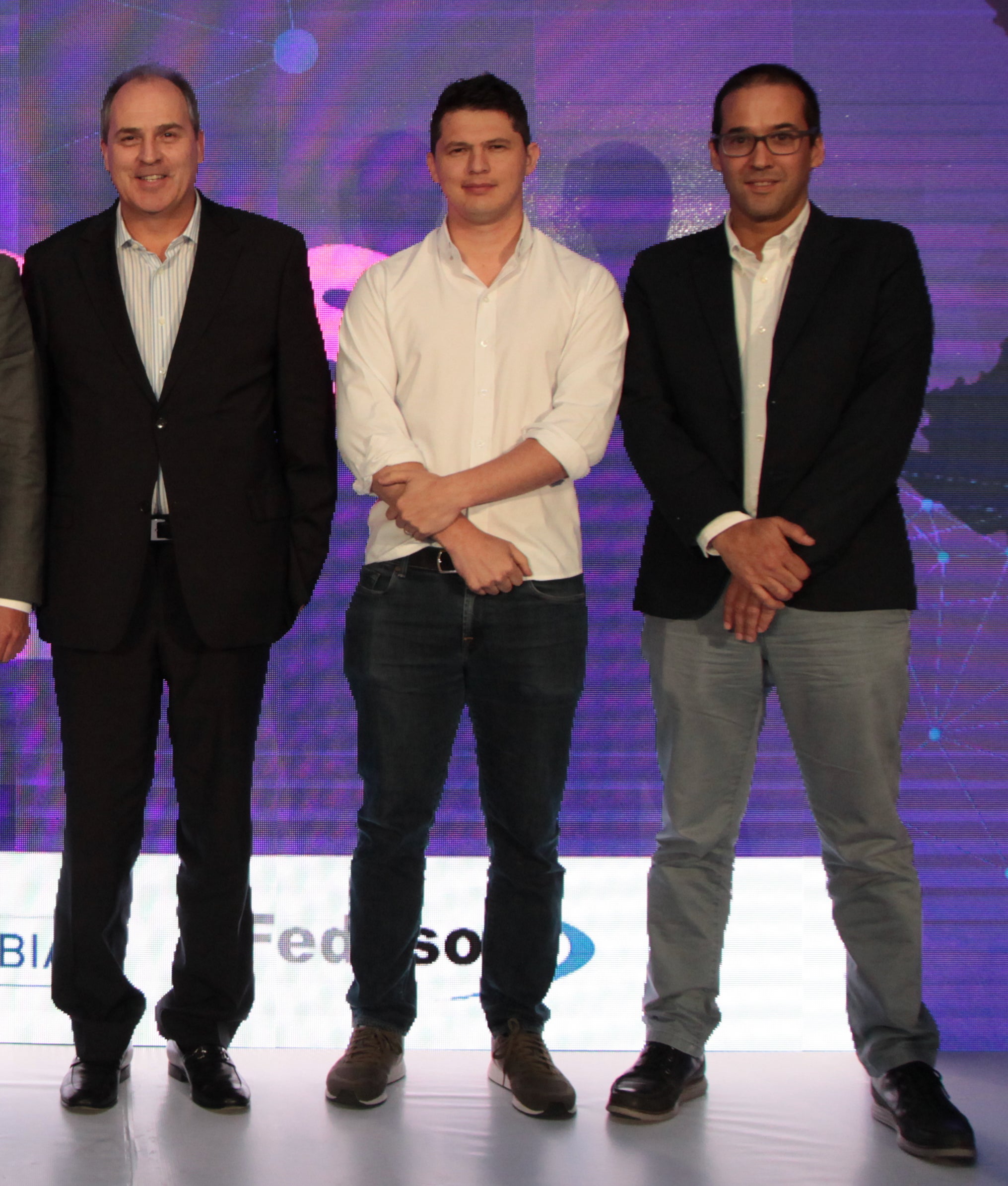 Eduardo Rivera, director de la Cámara de Apps de Fedesoft; Ximena Duque, directora de Empresas Competitivas de Fedesoft; y Renzo García, funcionario de Colciencias.