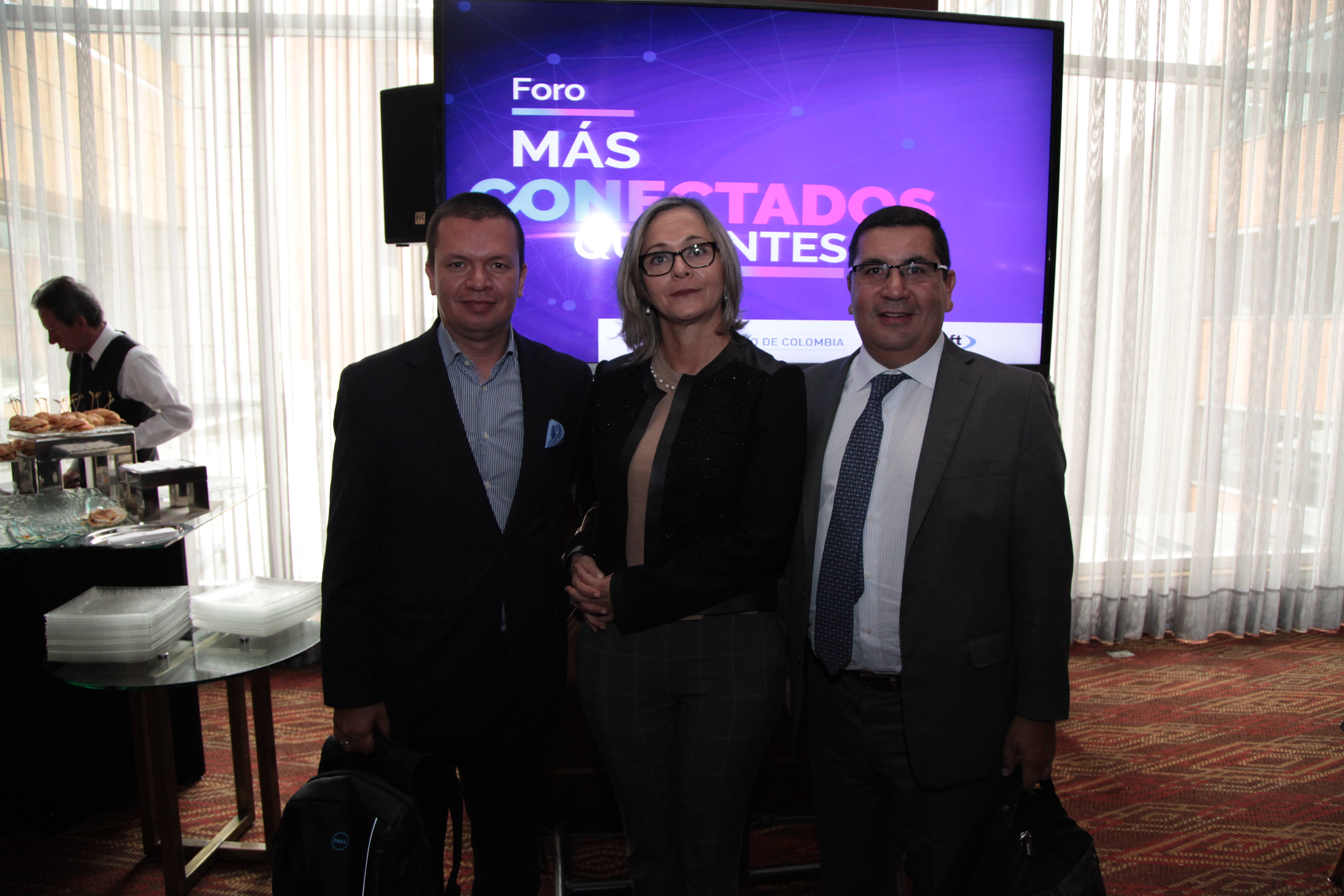 Carlos Tellez, dir. Regulación de TigoUne; Ángela Mesa, dir. Relaciones con Gobierno de TigoUne, y Jaime Plaza, vpte. Regulación de TigoUne.