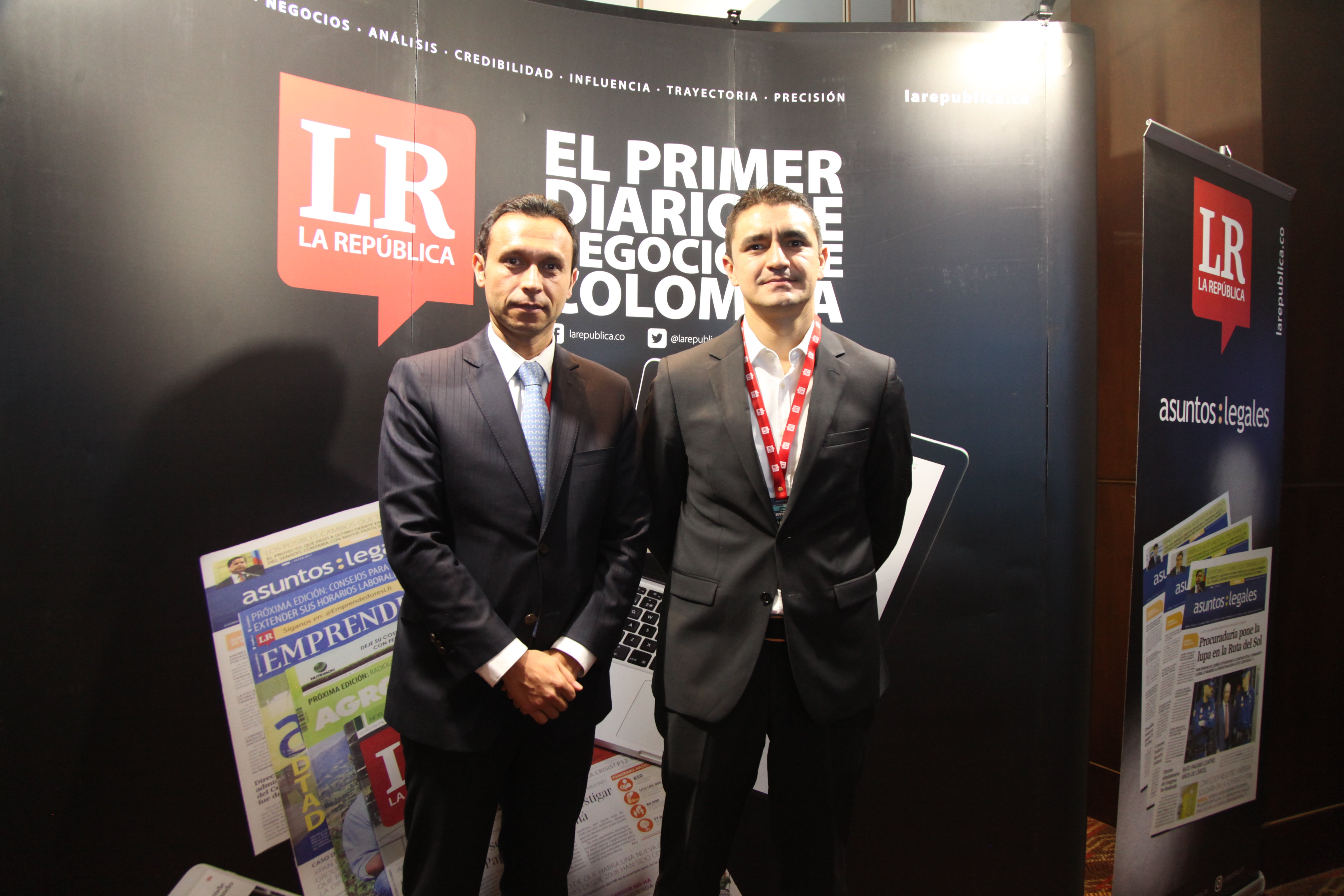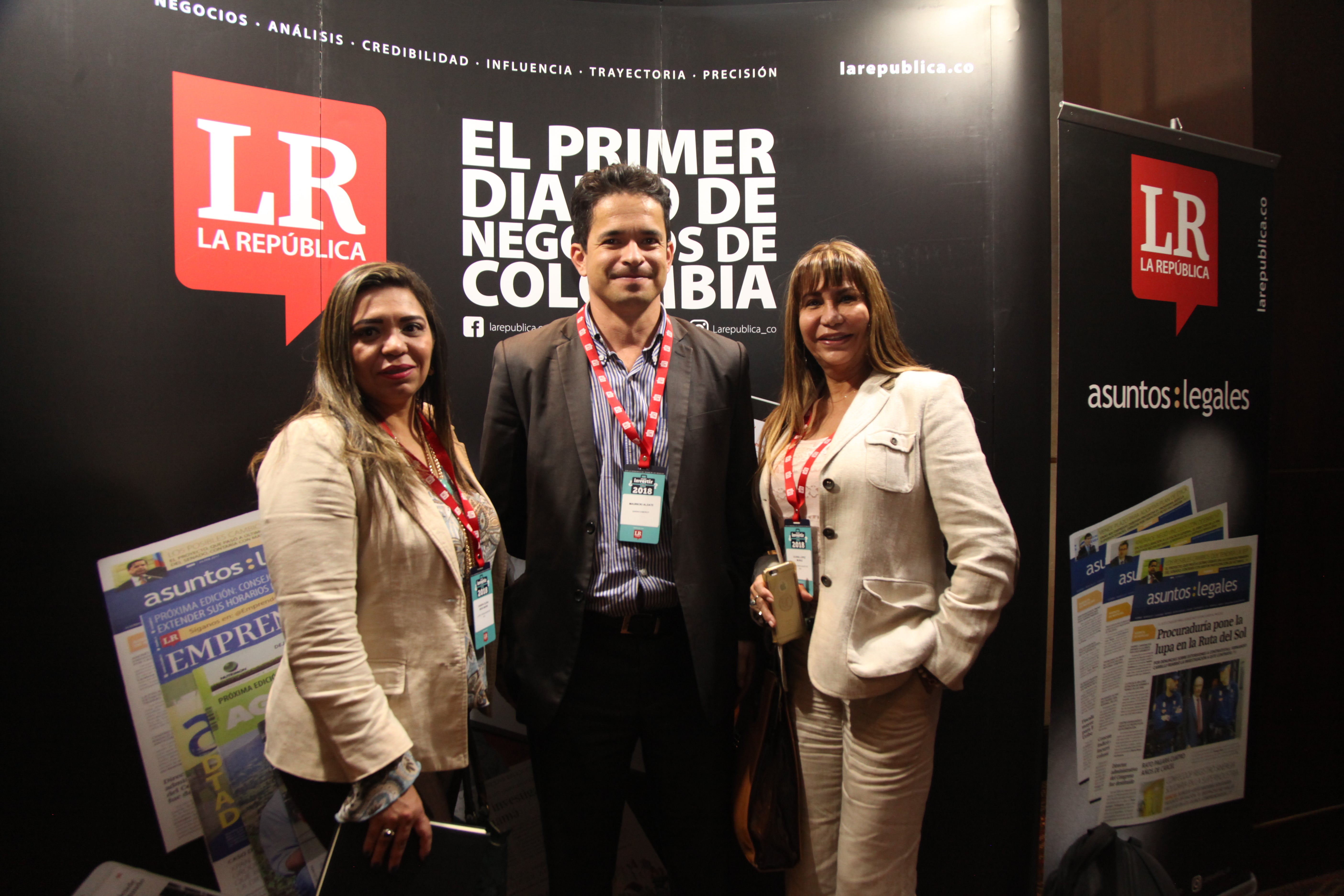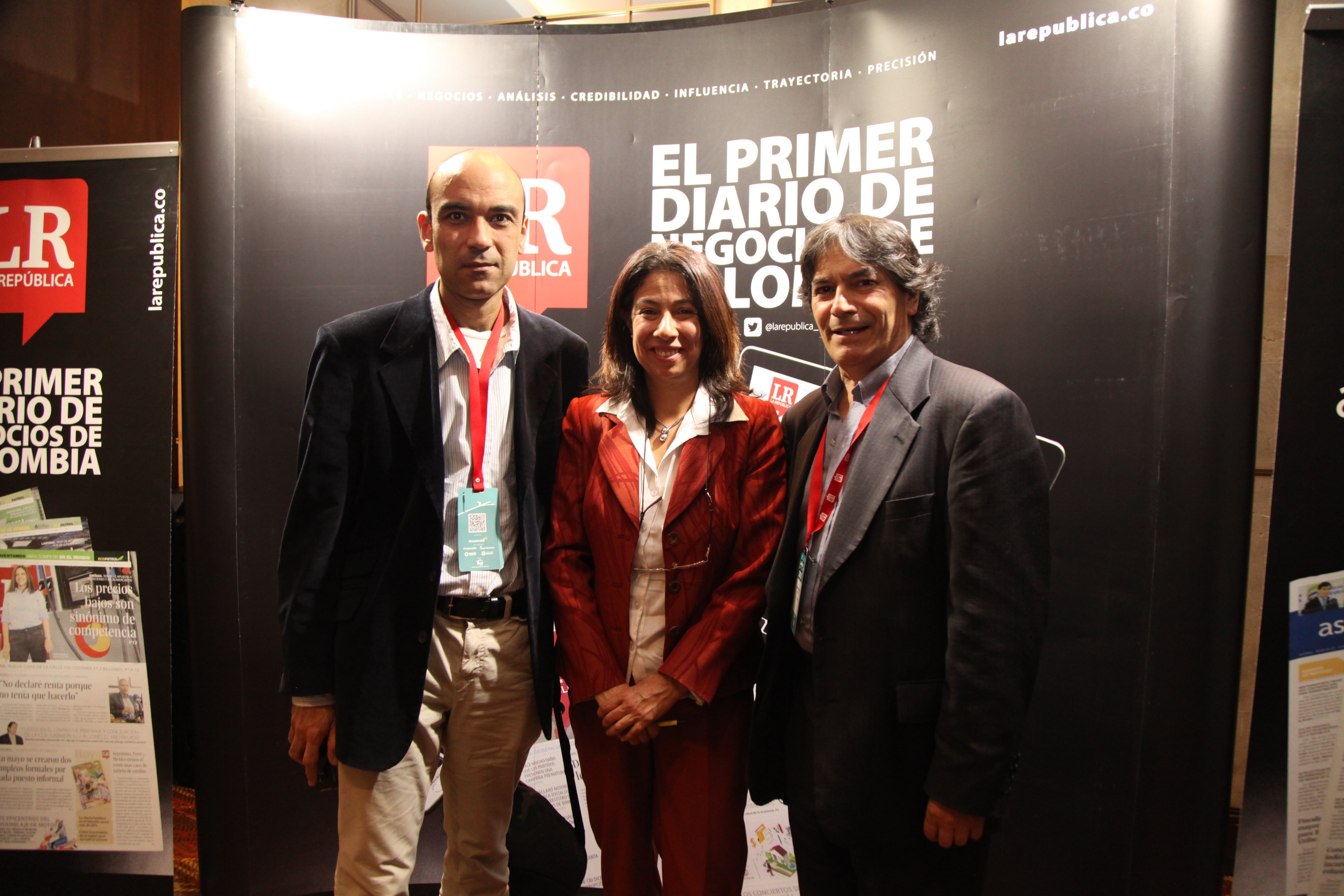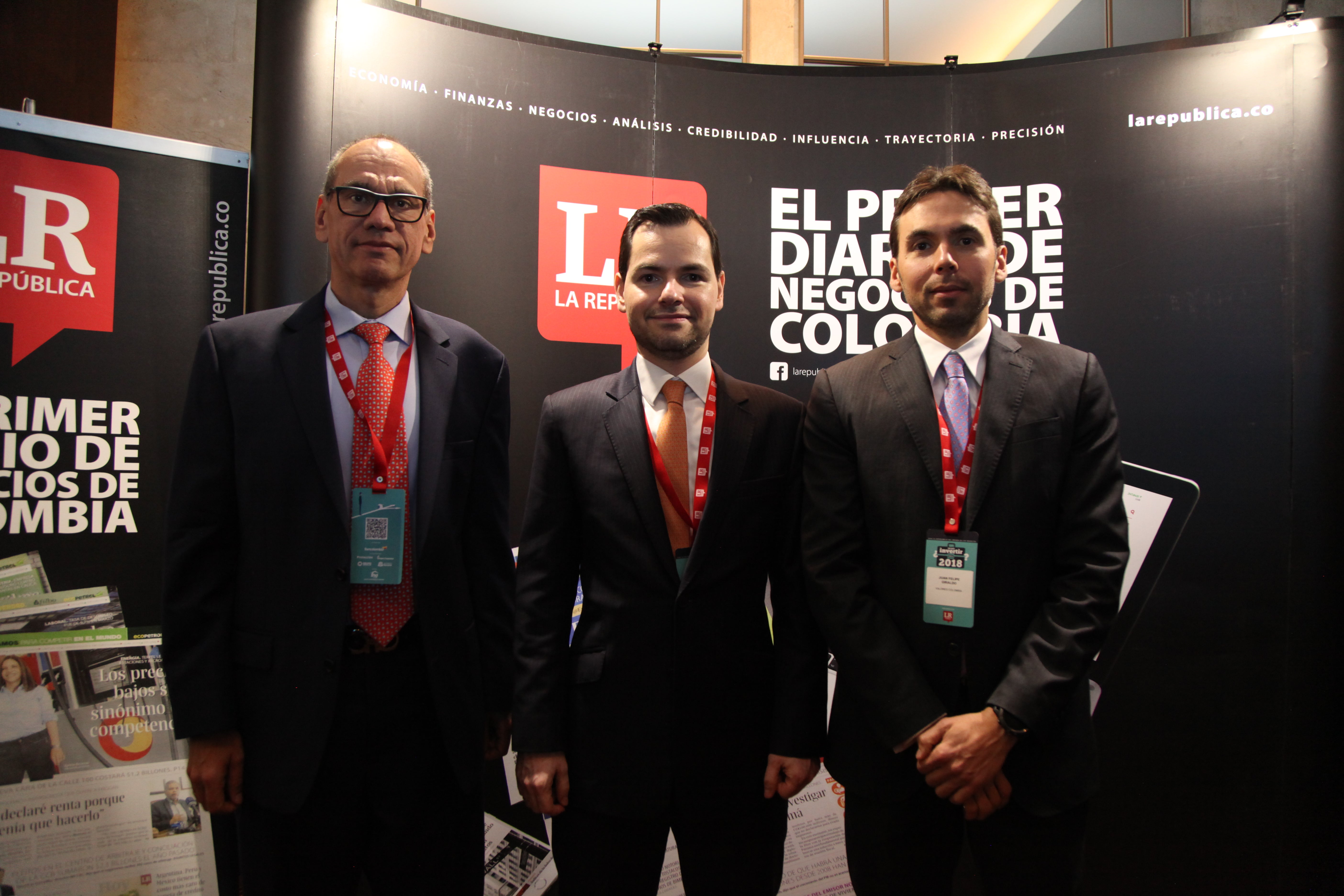 Fabio Chaparro, del Grupo Juriscoop; Juan Espinosa, director de Investigaciones del Grupo Bancolombia; y Juan Giraldo, presidente de Valores Bancolombia.