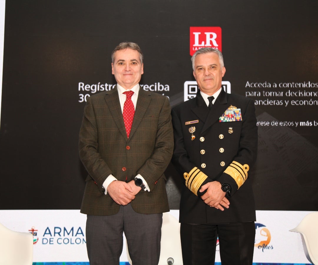 Sergio Quijano, gerente general del diario La República; en compañía del director general marítimo Dimar, vicealmirante John Fabio Giraldo