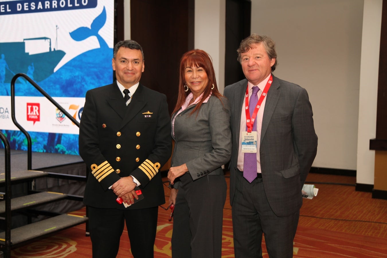 Capitán de Navío Mario Alex Cabezas Hinestroza, subdirector de Marina Mercante Dimar; Liliana López Muñoz, vpte. suplente del Instituto Iberoamericano de Derecho Marítimo; y Guillermo Solano Varela, gerente general de Navesco