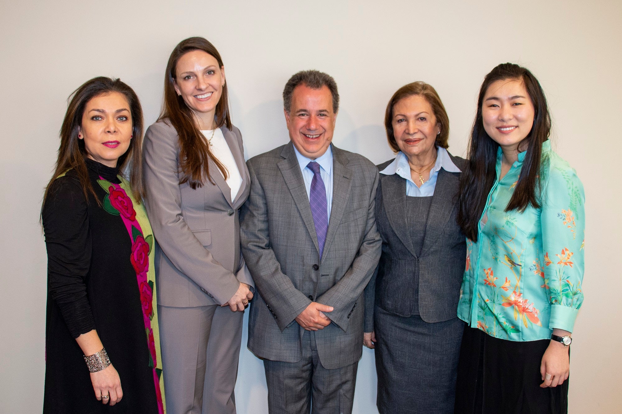 Margarita Henao, vicepresidenta de productos de Banca Personal de Davivienda; Genevieve Juilliard, managing director de Credit Services Global Expansion en Experian; Mauricio Dantamaría, exdirector del DNP; Leonor Melo de Velasco, fundadora presidenta del Banco Mundo Mujer; y Wenyi Cai, fundadora y managing partner de Polymath Ventures.