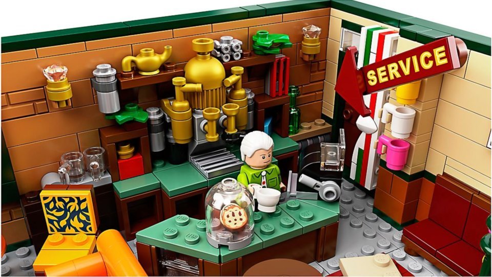 Lego también tomó este espacio como inspiración y sacó un set de 1.070 piezas con los seis protagonistas del programa (Chandler, Joey, Mónica, Phoebe, Rachel y Ross) y el mánager de la cafetería (Gunther) que incluye elementos de la cafetería como el sofá naranja y el escenario donde Phoebe cantaba ‘Smelly cat’.