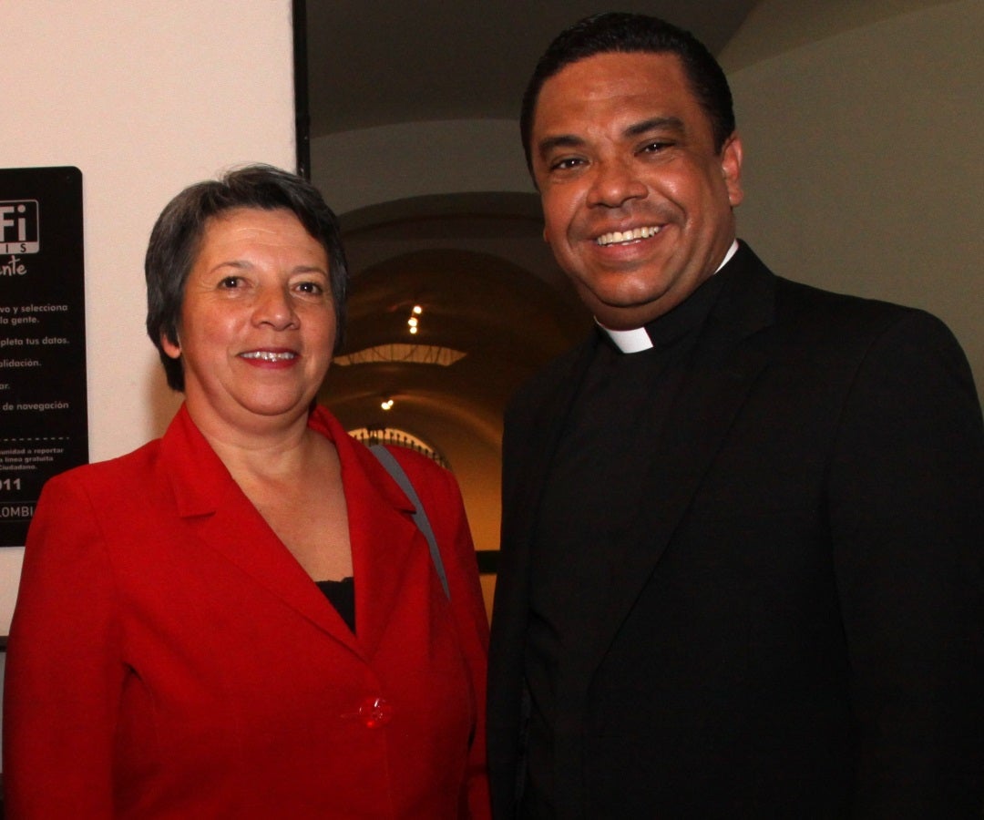Luz Medina, directora de comunicación de la conferencia Episcopal de Colombia y el padre Jaime Marenco, director de comunicaciones del mismo organismo.