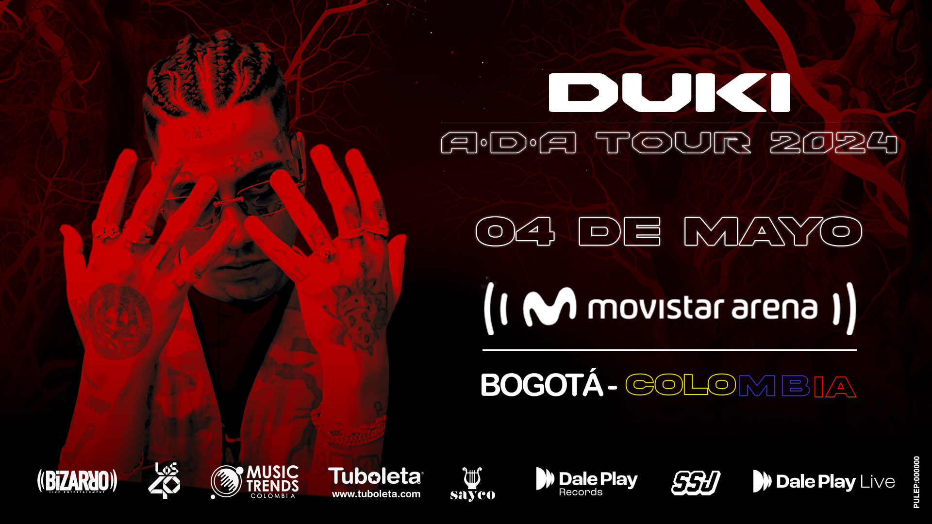 El argentino Duki estará en el Movistar Arena. El show será hoy y el complejo dará apertura desde las 5:00 p.m. Con esto, Duki regresa a Bogotá y vendrá con uno de sus más recientes éxitos musicales llamado ‘Goteo’, el cual se mantuvo 24 días como el primero en Argentina y lideró los rankings en Latinoamérica. El precio mínimo de la boletería es $120.000 más servicios.