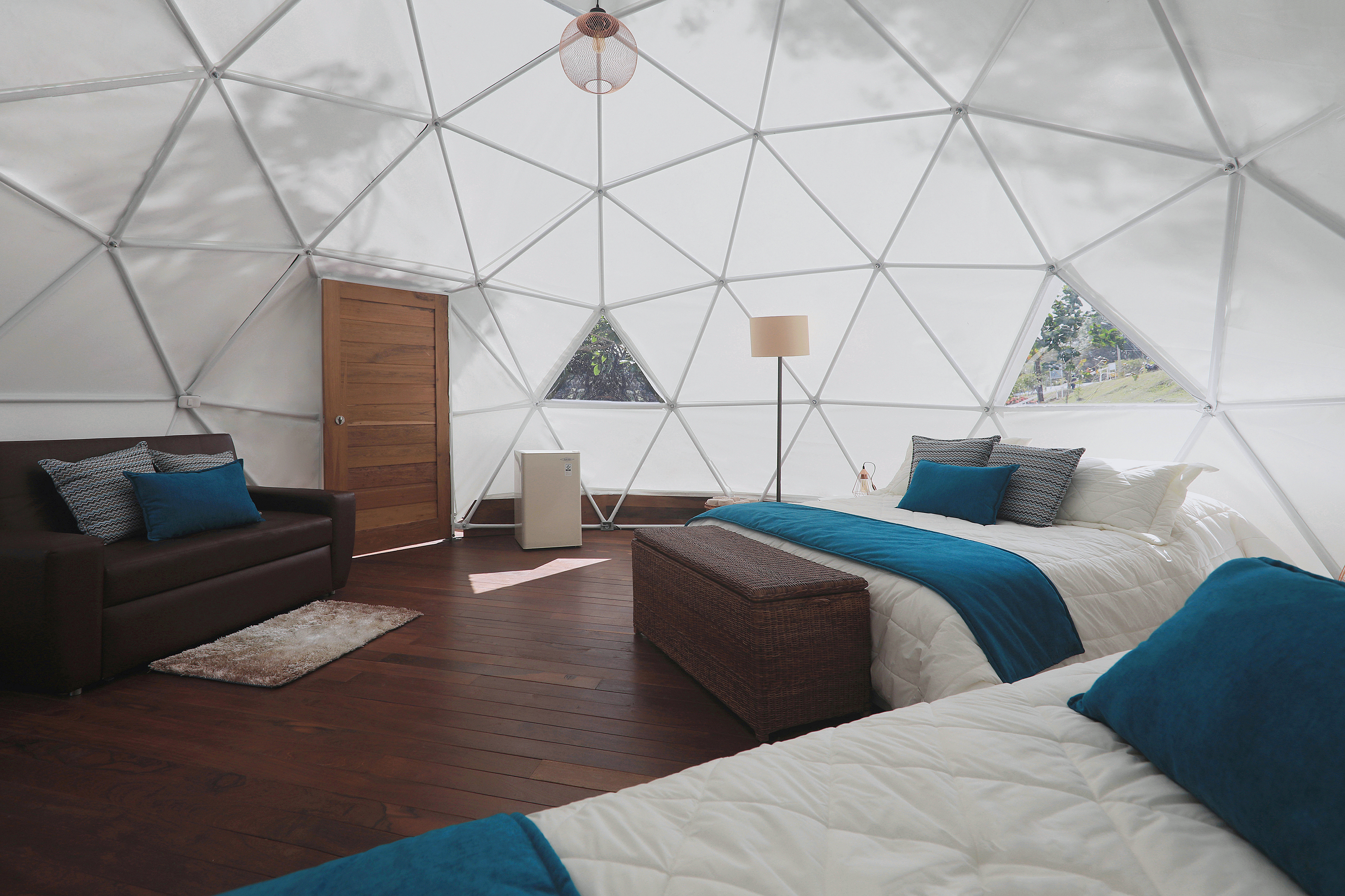 Esta nueva oferta de recreación cuenta con ocho glampings, cuatro de ellos con capacidad para cuatro personas y los restantes con capacidad para seis personas, todos completamente dotados. “Este proyecto lo fundamentamos en la innovación y en la eficiencia de los recursos financieros y ambientales, utilizando elementos reciclables biodegradables en todo el proceso. La inversión en estos ocho hospedajes fue de $500 millones, lo que representa tan solo 20% del costo de una construcción tradicional, alcanzando su misma capacidad instalada de alojamiento”, agregó Madriñán.