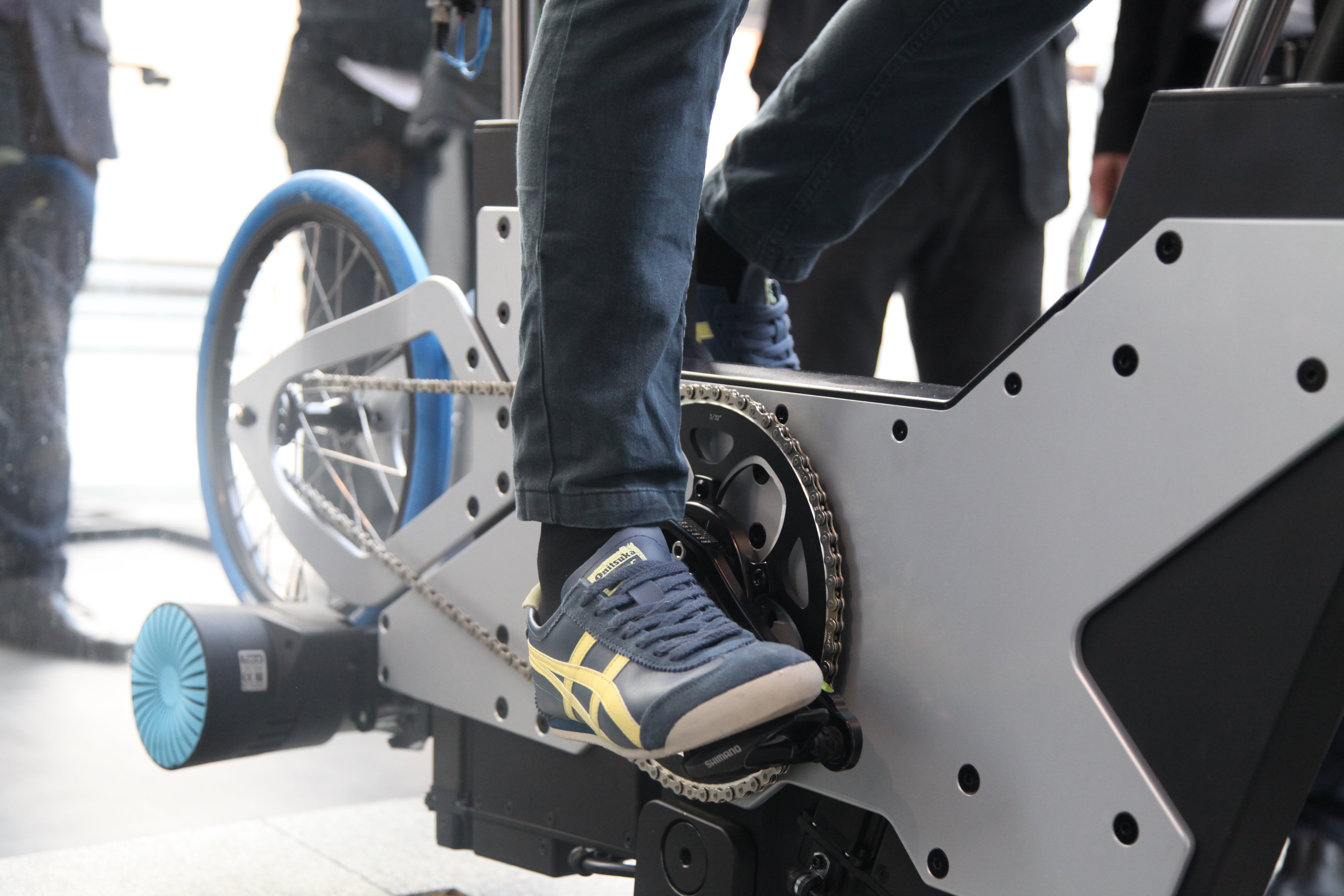 “La bicicleta de uso personal es ajustada de forma biomecánica, lo cual le garantiza a la persona que está entrenando el acondicionamiento milimétrico y la adherencia exacta de su cuerpo. El siguiente paso es conectar esa bici al simulador, capaz de recrear la rugosidad del terreno de pista, carretera y montaña (MTB). ¿Para qué hacemos esto? Para garantizarle al pedalista todas las condiciones que encuentra habitualmente en su entorno de entrenamiento”, indicó Chaves.