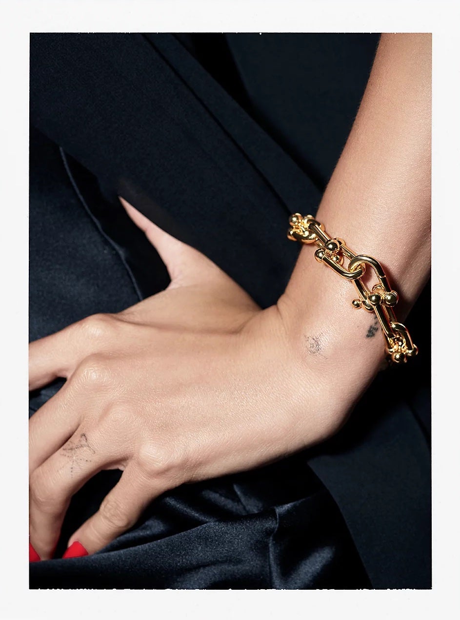 Este año, los mejores adornos navideños no están en el árbol. Este collar con diseño de Tiffany HardWear y el brazalete serán el centro de atención.