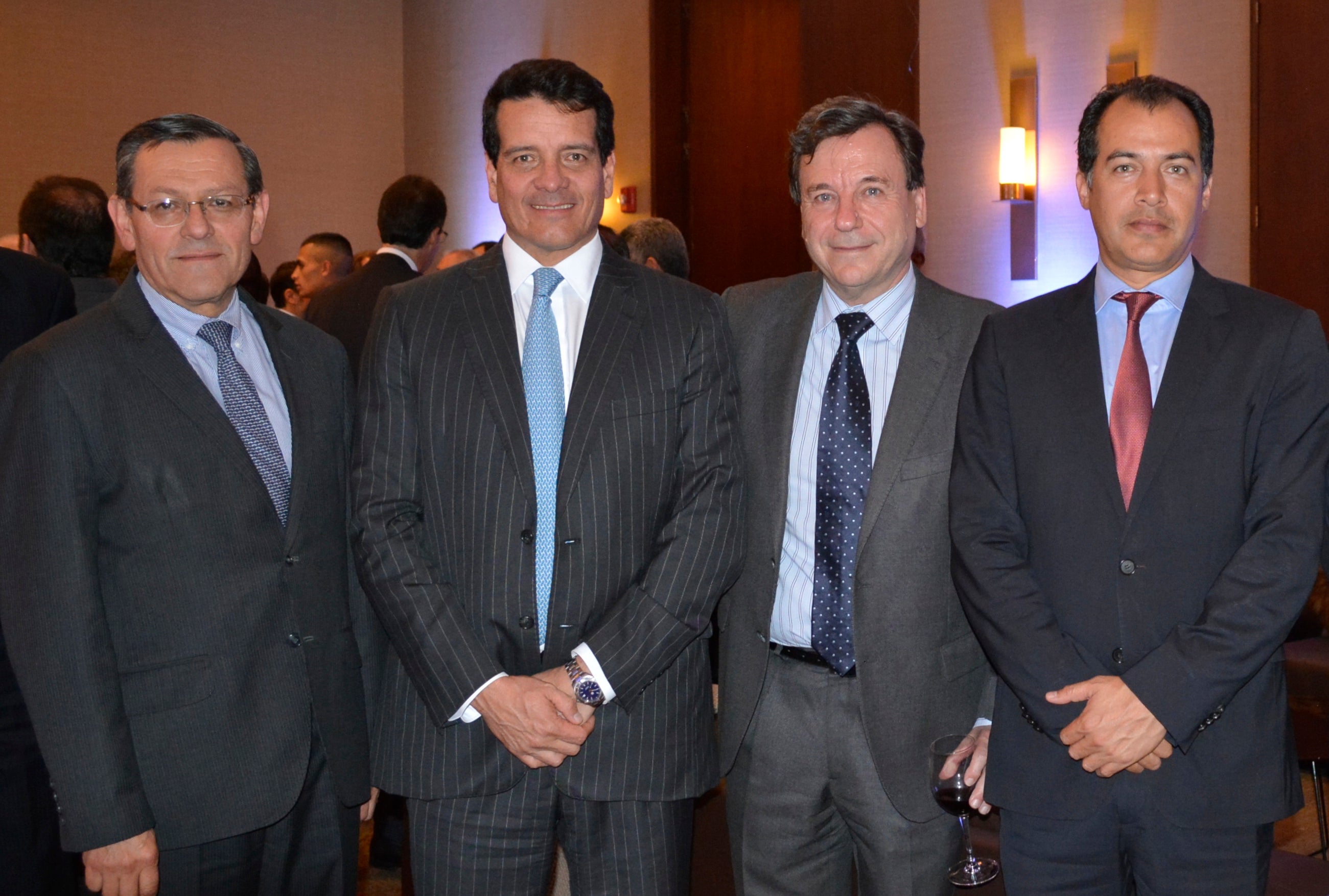 Fernán Bejarano, vicepresidente jurídico de Ecopetrol; Felipe Bayón, presidente de Ecopetrol; Luis Antonio García; y Adrian Coral, presidente de Gran Tierra Energy Colombia, durante el homenaje realizado a Echeverry.