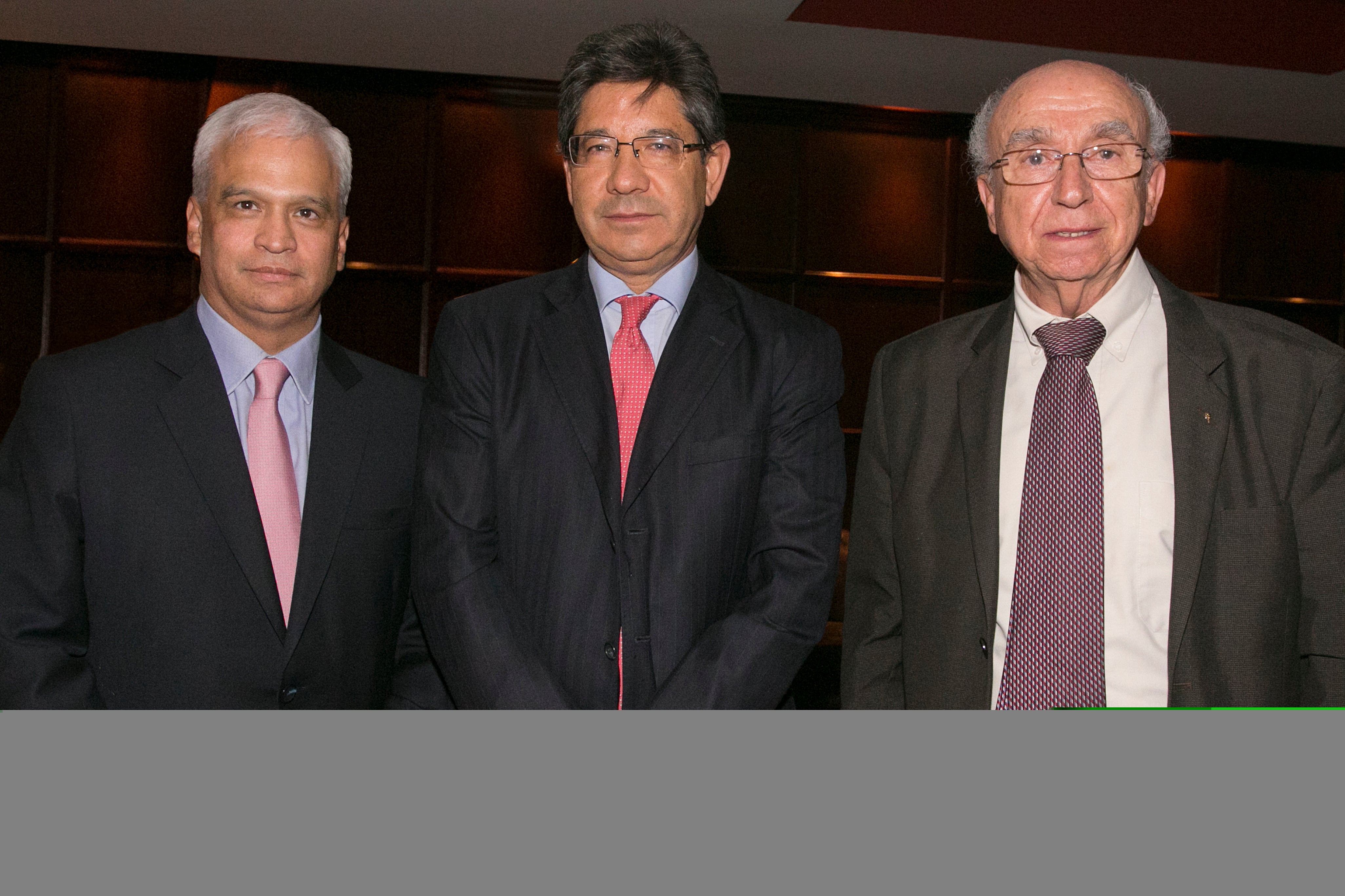 José Luis Suárez, socio director de Gómez-Pinzón; el nuevo jefe de la Alta Corporación; y Jorge Valencia Jaramillo, economista y escritor.