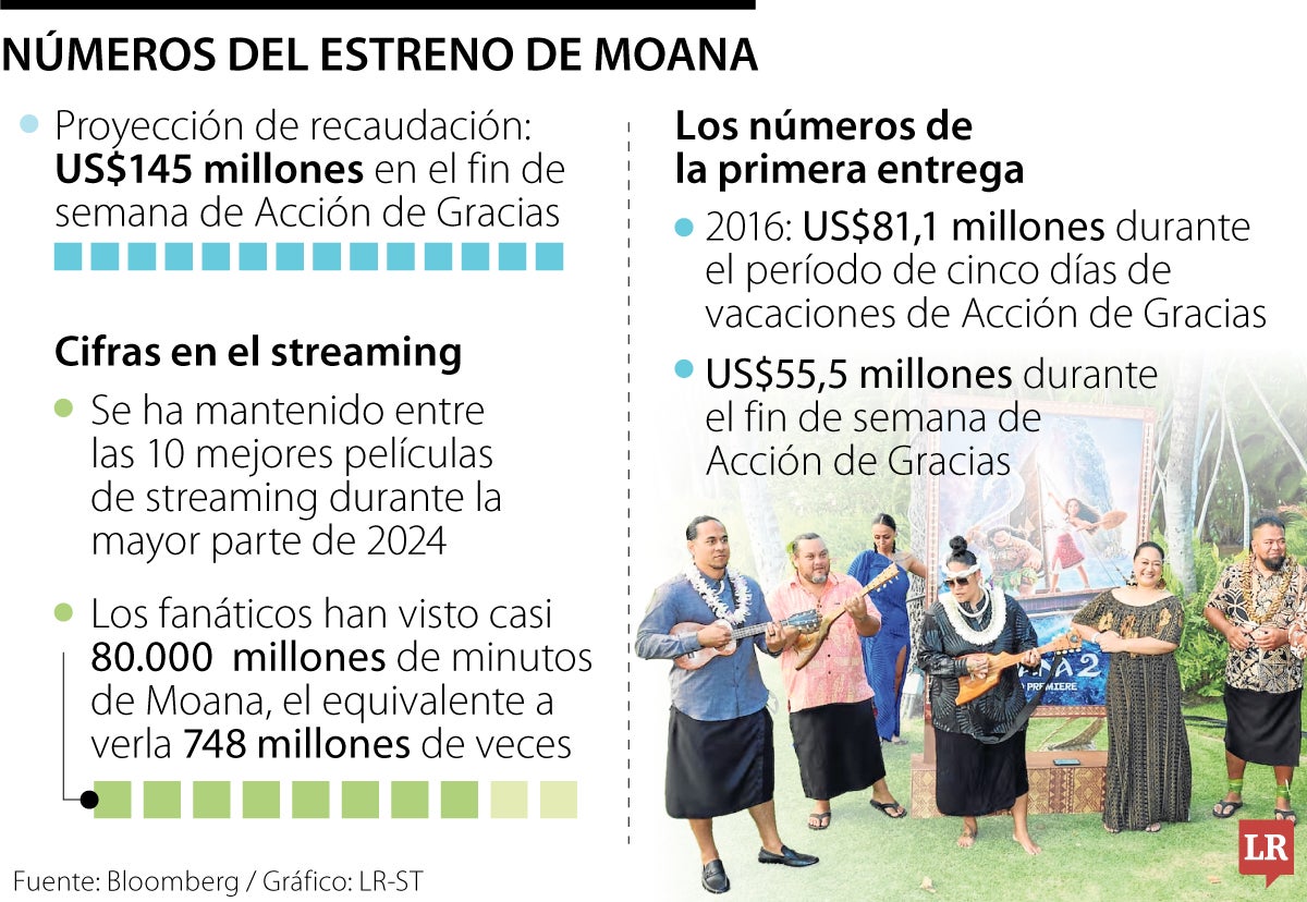 Hoy llega a cine Moana 2, que busca superar récord de taquilla de US$1.600 millones.