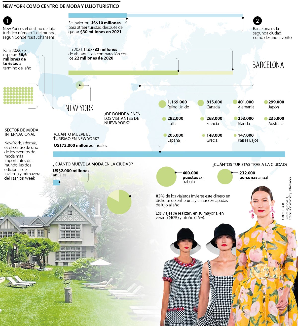 La variedad de eventos y actividades para hacer en Nueva York también la han ubicado como la ciudad favorita para los turistas que buscan lujo; según la última edición de Condé Nast Johansens, al destino le sigue Barcelona, España, en la que además de oferta gastronómica también hay un amplio portafolio de boutiques.