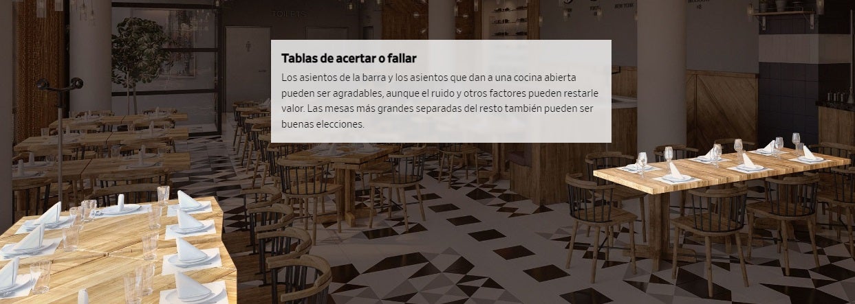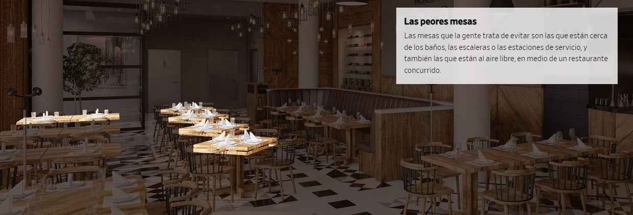 Las mesas que la gente trata de evitar son las que están cerca de los baños, las escaleras o las estaciones de servicio, y curiosamente también las que están al aire libre, en medio de un restaurante concurrido.