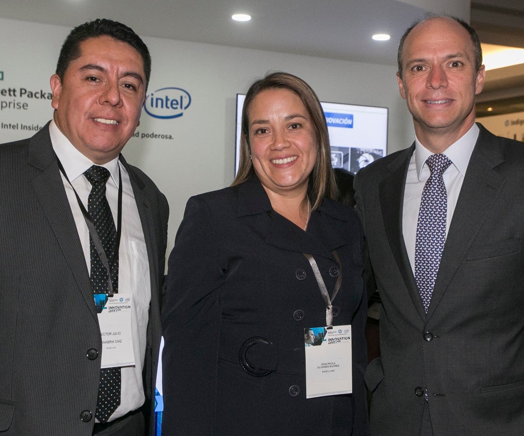 Mateo Figueroa, gerente HP Inc. en Colombia; David Luna, Ministro TIC; y Ricardo Rodríguez, gerente de Hewlett Packard Enterprise en Colombia.