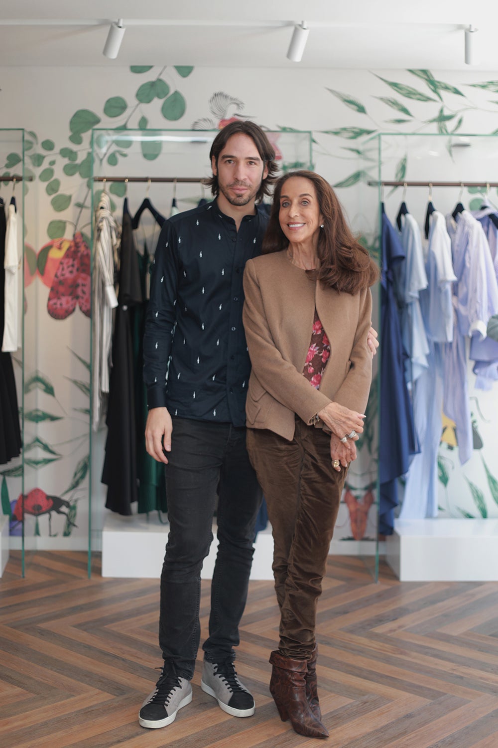 Alex Srour, cofundador de ST DOM; en compañía de la especialista en moda Pilar Castaño, durante la inauguración de la boutique en Bogotá.