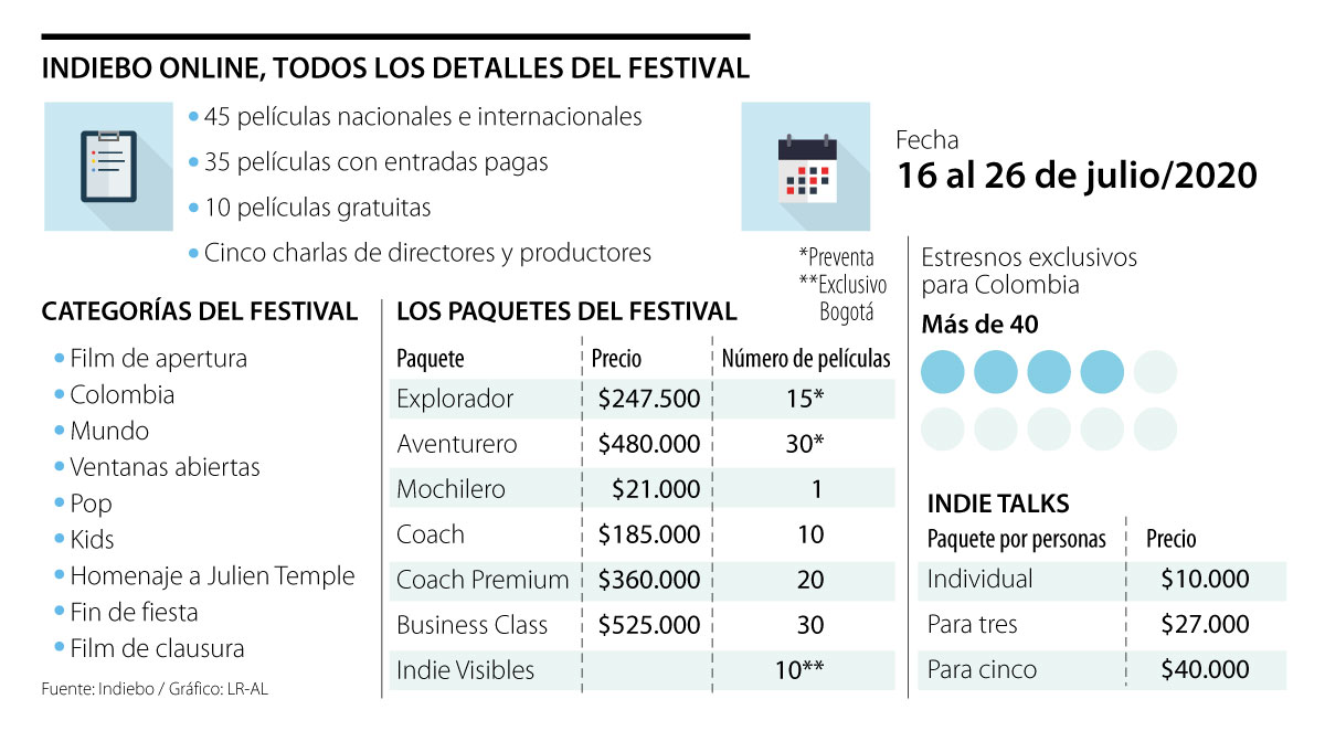 El Festival de Cine Independiente de Bogotá, IndieBo, se transformó en IndieGo para continuar con su labor como plataforma que impulsa el cine independiente. En esta ocasión el festival se realizará en plataformas virtuales y podrá llegar a todos los rincones del país, por lo que se espera que el número de nuevos espectadores sea superior a los 40.000, con un alza importante respecto a otros años donde el promedio de asistencia ha sido de 20.000 personas.