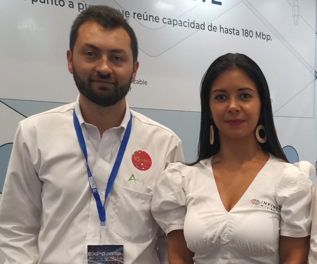Rubén Castillo, ingeniero de ventas de Avantec, y Angie Vargas, gerente de marketing Infinet Wireless.