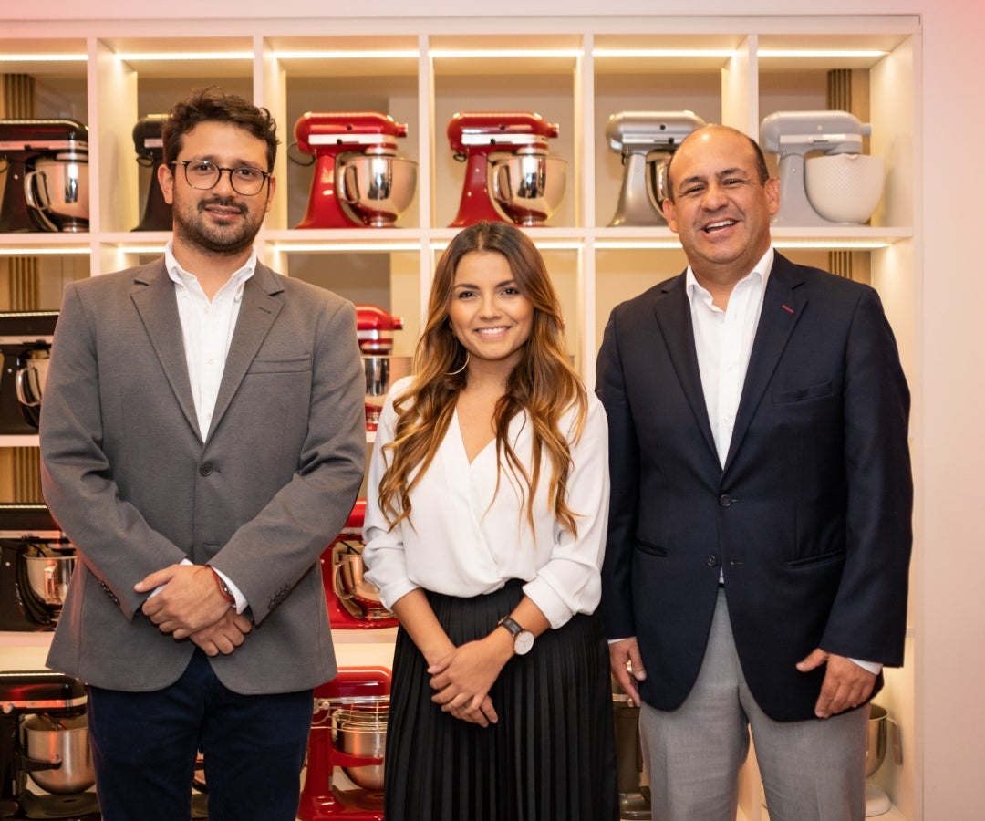Fernando Ortega, gerente de cuentas clave KitchenAid; Natalia García, ejecutiva de marca para Latinoamérica; y Mauricio Ibáñez, gerente de ventas KitchenAid.