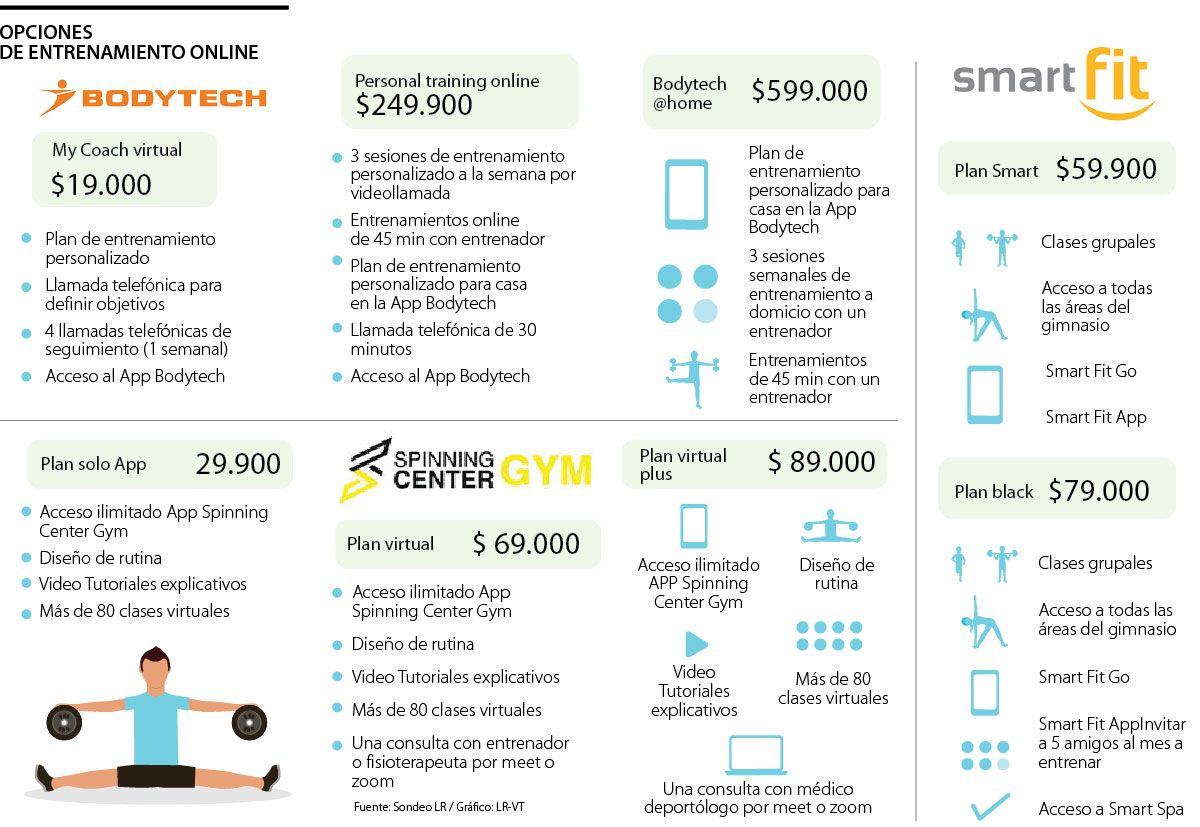 Por parte de los grandes gimnasios del país también se ha iniciado a explotar esta posibilidad apoyándose en la tecnología, tanto que Bodytech lanzó un área exclusiva de servicios virtuales, los cuales en cuatro productos digitales en 2020 generaron $673 millones de ingresos con 2.400 afiliados.