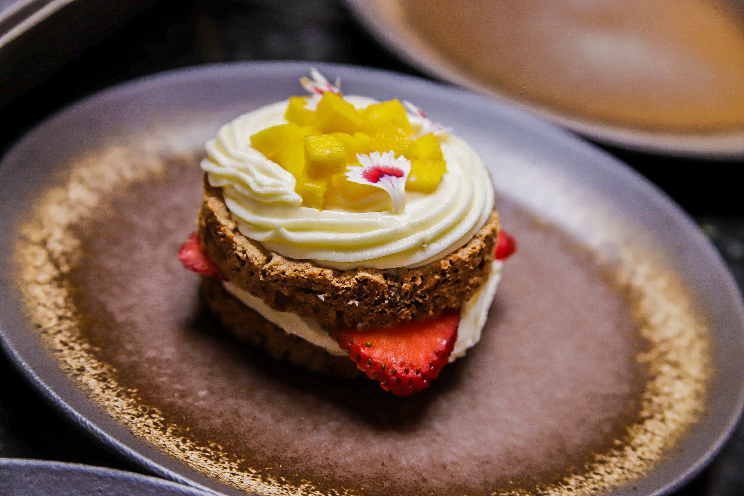 En notas dulces, el Mostachón de mango y fresas es el elegido