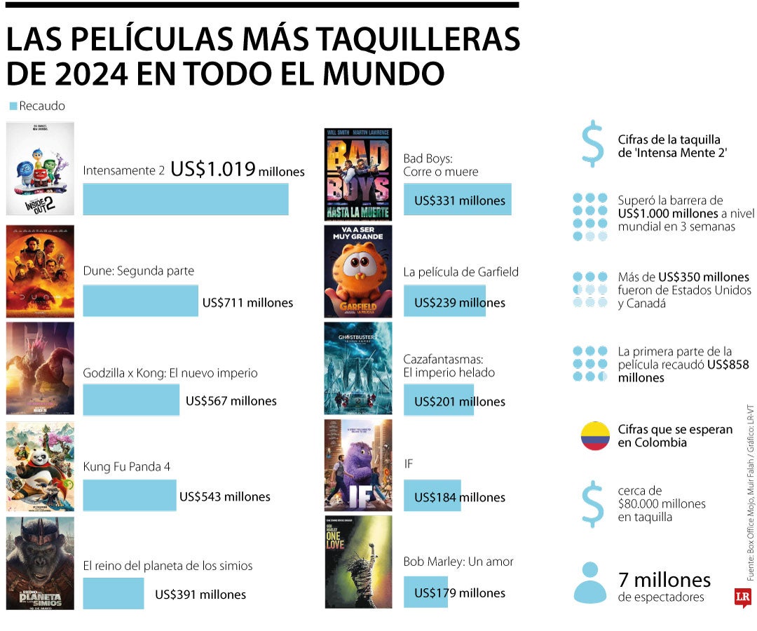 “El éxito de taquilla de ‘IntensaMente 2’ da un brillo de esperanza para la industria, mostrando que las familias quieren ir a cine. Lo que más influyó fue el hecho de ser una secuela de una excelente película que está en la memoria de muchos y que alimenta la taquilla de la nostalgia”, afirmó Alejandro Matallana Posada, guionista y profesor de cine de la Universidad Jorge Tadeo Lozano.