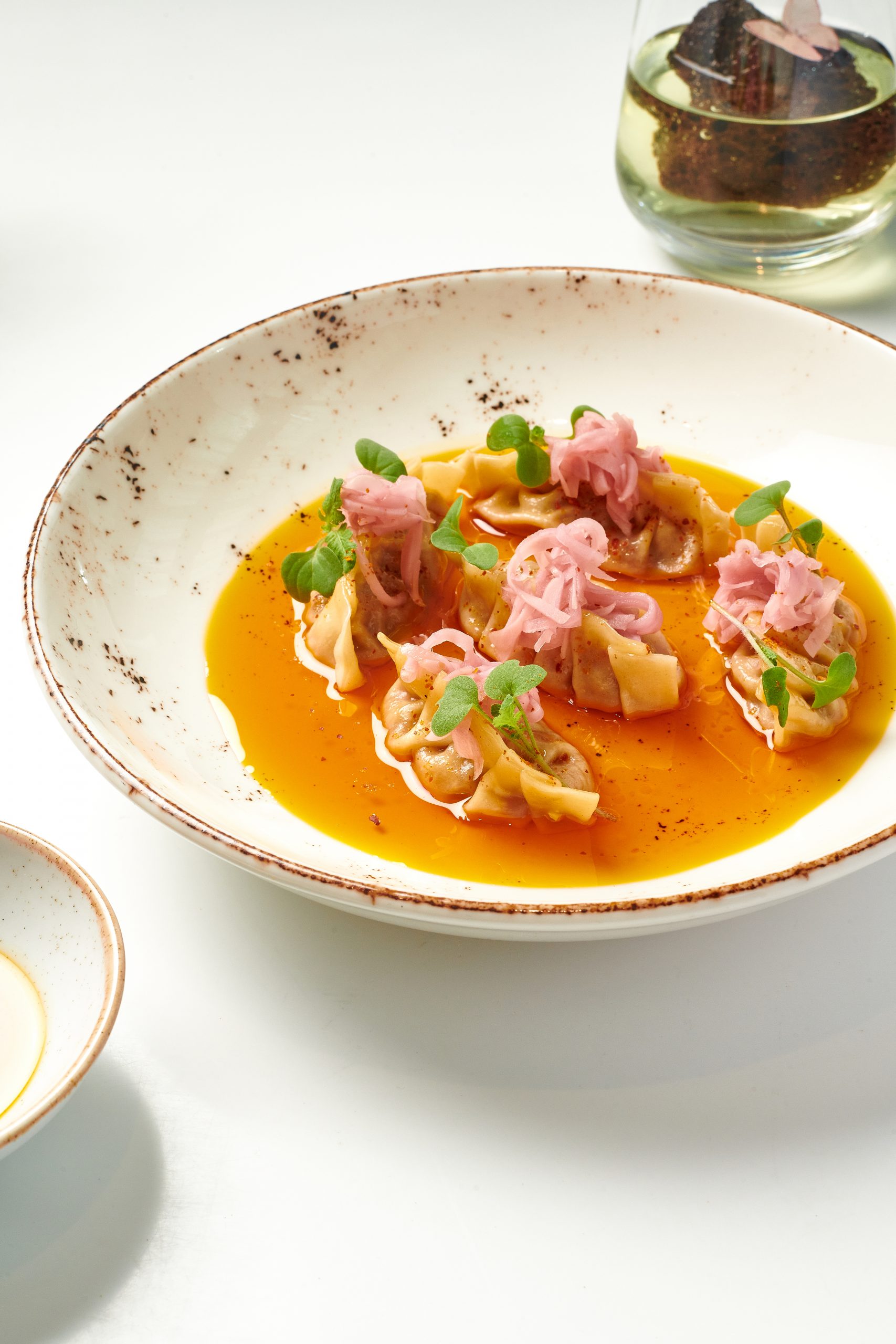 Plato con un sabor imponente al tener como base principal el tucupi, una receta indígena elaborada a base de yuca amazónica. Contiene sabores frescos como tallos de apio y cebollina y aromas ácidos.
