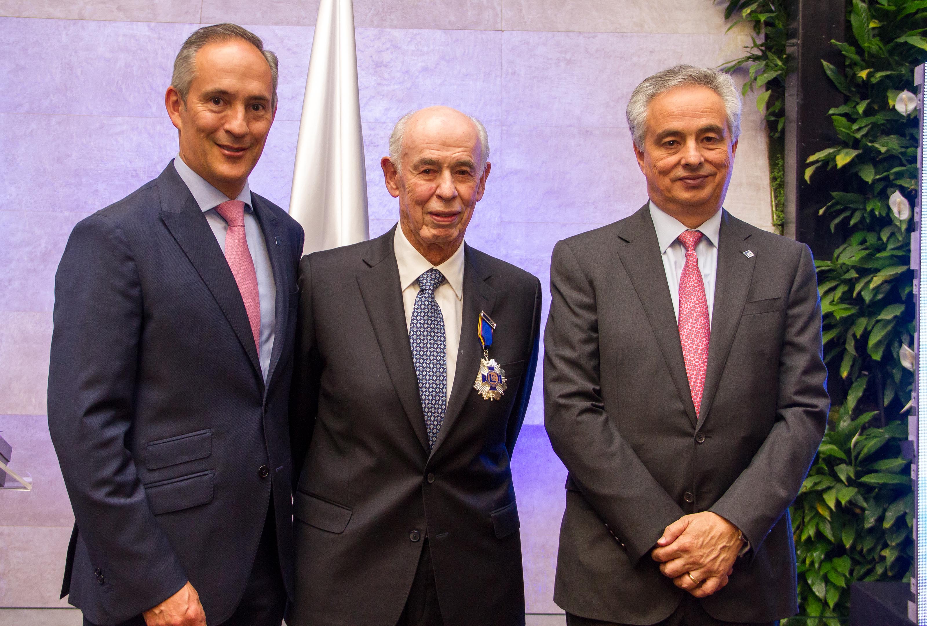 El Consejo Directivo y Henry Bradford Sicard, rector del Colegio de Estudios Superiores de Administración (Cesa), otorgaron a José Alejandro Cortés Osorio la Orden Administrador Emérito, como reconocimiento a su destacada labor en diferentes ámbitos, especialmente como presidente de Seguros Bolívar, cargo que ocupó durante más de 40 años. En la foto: Henry Bradford - Rector del Cesa, José Alejandro Cortés Osorio Y Juan Francisco Mejía