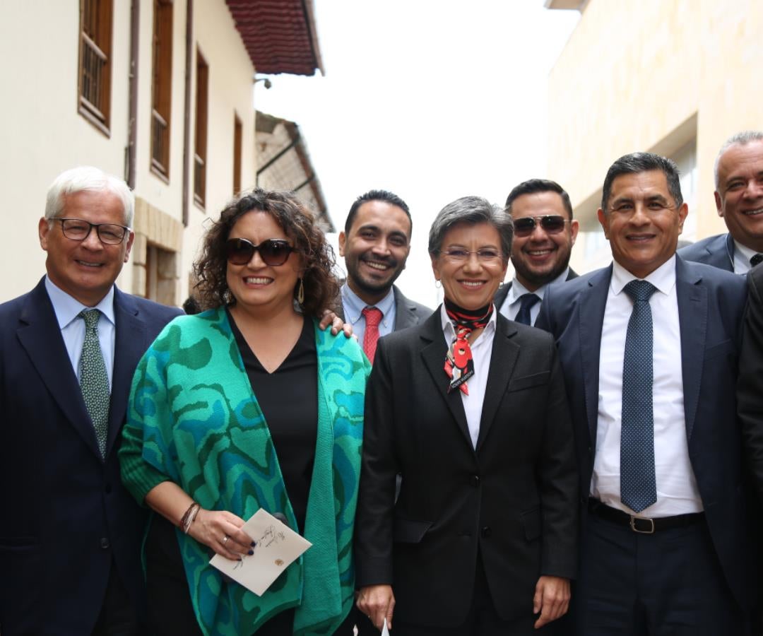 Juan Carlos López, alcalde de Popayán; Angélica Lozano, senadora; Claudia López, alcaldesa de Bogotá y Jorge Iván Ospina, alcalde de Cali en el cambio de mando en Bogotá.