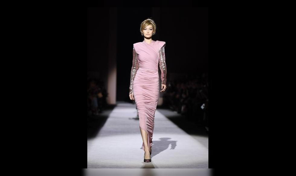 Gigi Hadid lució un atuendo color rosado en el desfile.