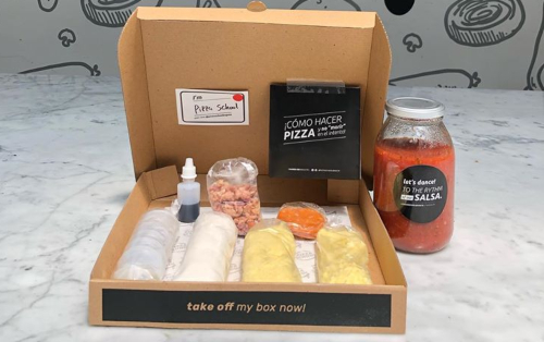 A la casa llega un kit completo con todos los materiales necesarios para hacer una muy buena pizza como si estuviera en Pizza School; junto con los ingredientes y las instrucciones para hacerla.