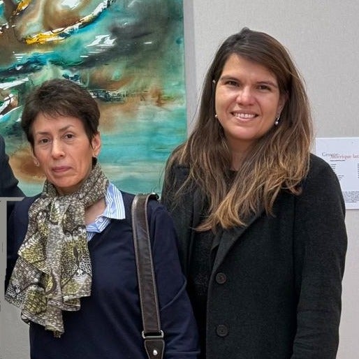 María Transon, artista plástica, y Sandra Tafur Soto, responsable de Asuntos Culturales de la Embajada de Colombia en Francia.
