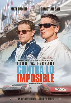 Matt Damon y Christian Bale protagonizan este filme, que cuenta la historia verdadera del visionario diseñador de autos estadounidense Carroll Shelby y el intrépido conductor británico Ken Miles. La película ya se encuentra disponible en las salas de Cine Colombia.