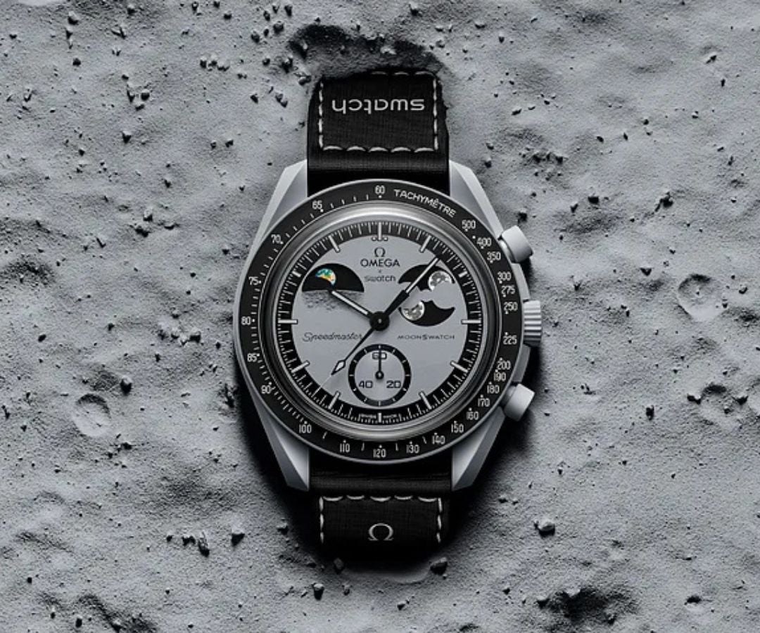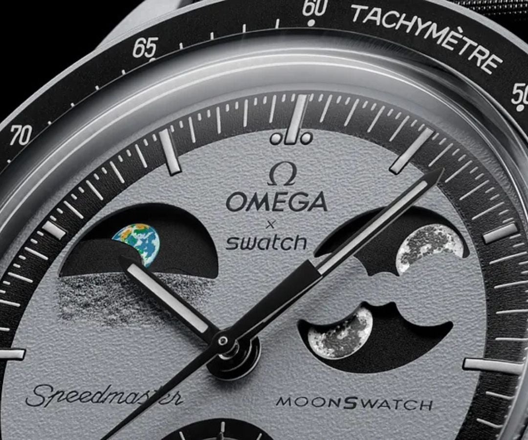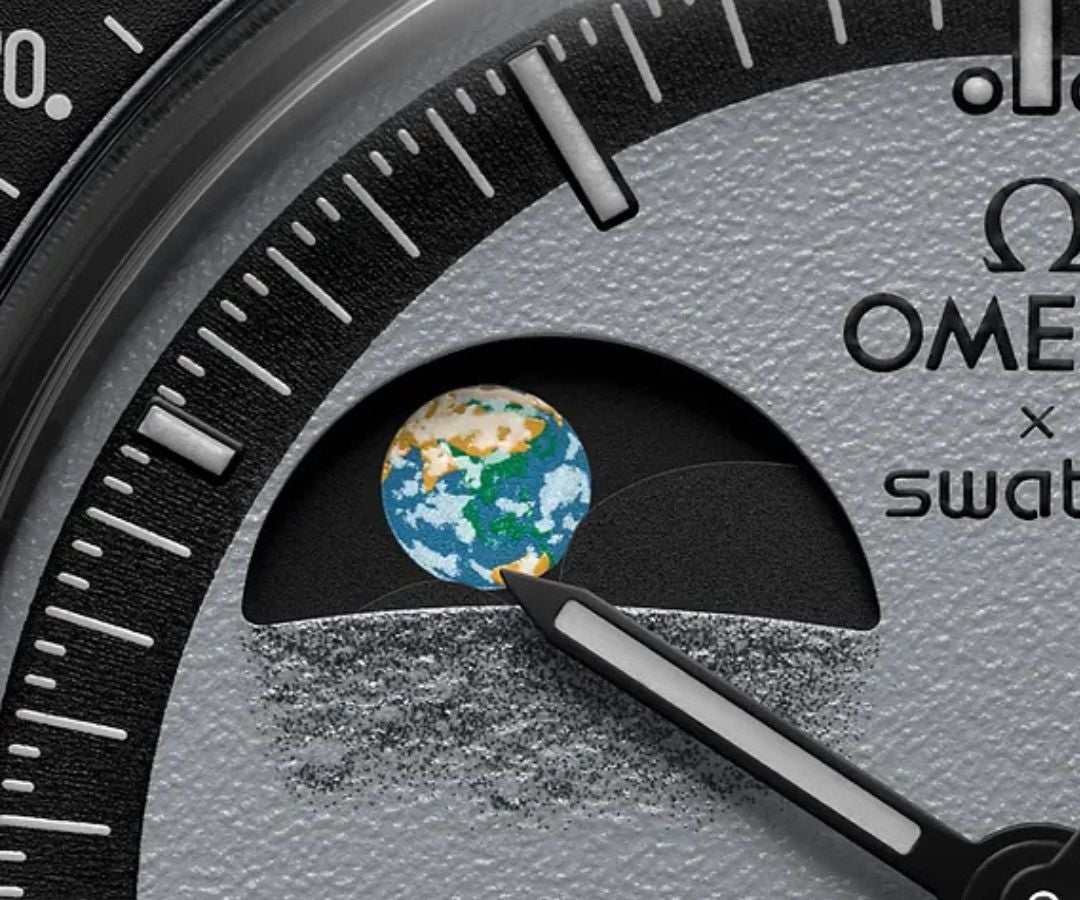 La casa relojera suiza Swatch lanza el primer reloj con una fase lunar y otra terrestre
