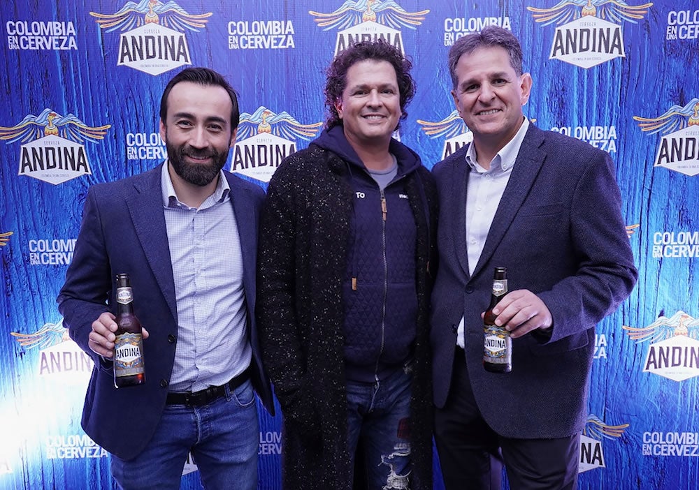 Durante el evento, realizado en el Chamorro City Hall, la Central Cervecera de Colombia presentó Andina, una cerveza 100% colombiana, que está inspirada en la riqueza de nuestro país, por lo que el evento fue denominado por los directivos de la compañía como ‘el lanzamiento del siglo’. En la foto: Carlos Alzate, vicepresidente de Marketing de Central Cervecera de Colombia; Carlos Vives, cantante y encargado del show de lanzamiento de la compañía; y Mauricio Medina, presidente de Central Cervecera de Colombia.