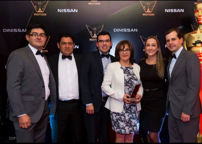 Hugo Sierra, jefe de taller Tunja; Luis Velandia, soporte de repuestos; Fabián García, ingeniero de servicio; Nohora González, gerente dealer Tunja; María Callejas, gerente Zona Cafetera; y Carlos Felipe Caicedo, gerente de Dinissan.