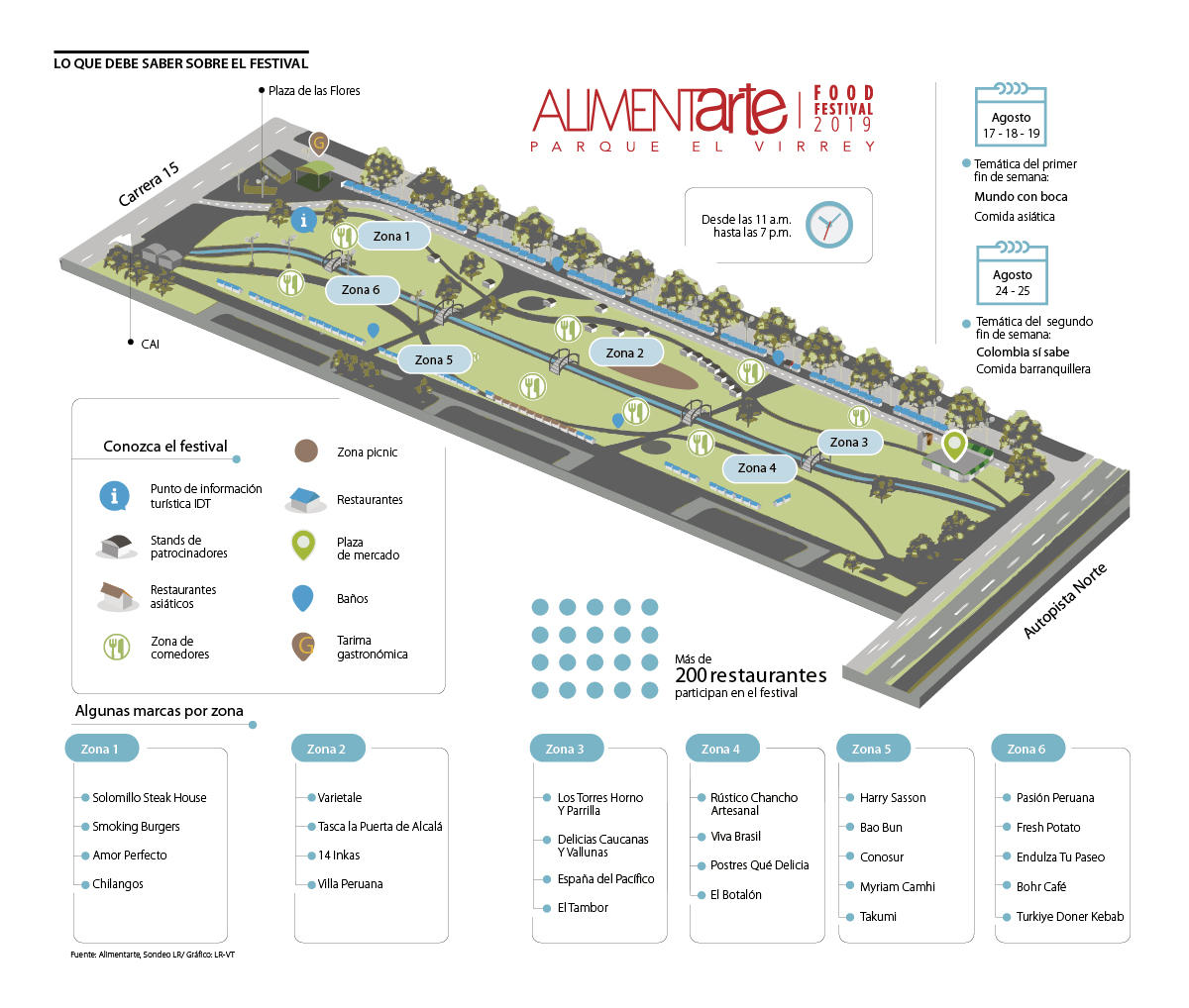 Aunque estas propuestas gastronómicas serán las invitadas, el festival tendrá una oferta variada. Los restaurantes participantes van desde la comida típica, como El Tambor, Varietale y Delicias Caucanas y Vallunas; hasta las propuestas de comida internacional de Turkiye Doner Kebab, 14 Inkas y Tasca la Puerta de Alcalá.