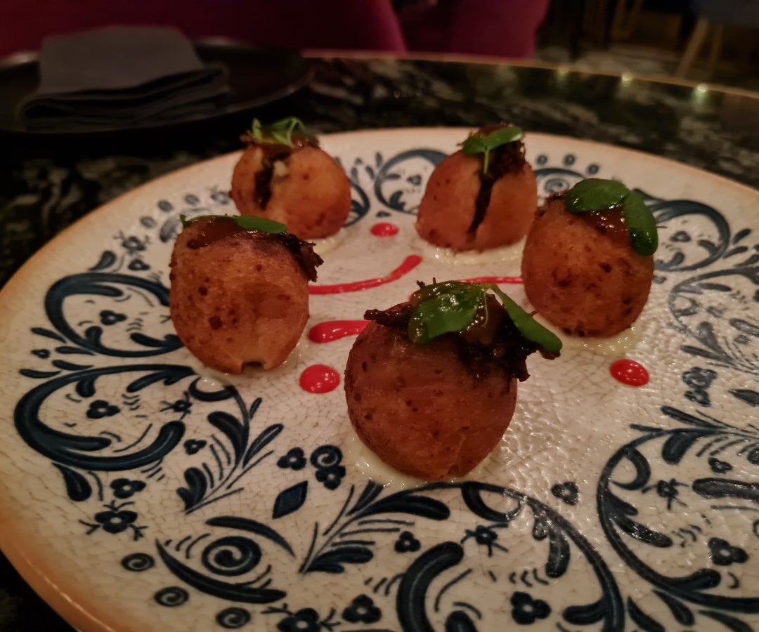 Como primera sorpresa, en una especie de bienvenida perfecta y crocante, la recomendación es a pedir unos buñuelos short rib, preparados a base de yuca y rellenos de carne braseada, alioli de limón y jalea de guayaba.