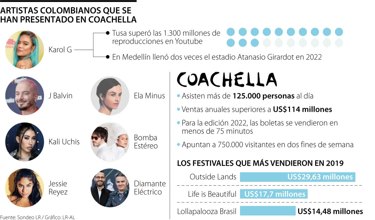 Además de Karol G, las colombianas Ela Minus y Jessie Reyez (hija de padres colombianos) están entre las invitadas al festival. En otras ediciones, Bomba Estéreo, Diamante Eléctrico, J Balvin y Kali Uchis han integrado el cartel principal.