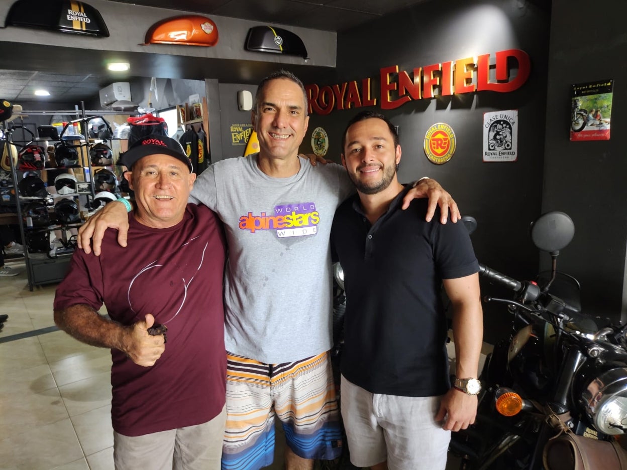 Foto: Federico Ochoa, gerente de Royal Enfield Cartagena; Juan Londoño, gerente de Royal Enfield Envigado; y Mateo Lara, jefe de mercadeo en Royal Enfield Colombia.
