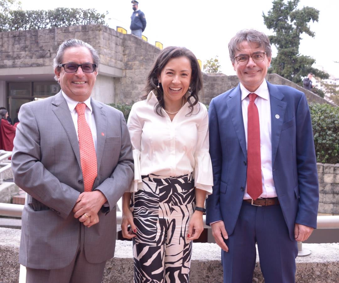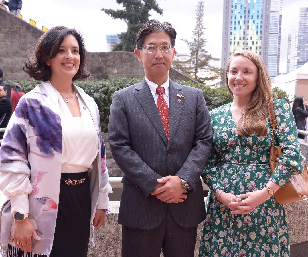 Foto: Catalina González, directora de internacionalización de la UniAndes; Takasugi Mashiro, embajador de Japón; y Fiona NicDhonnacha, embajadora de Irlanda en Colombia.