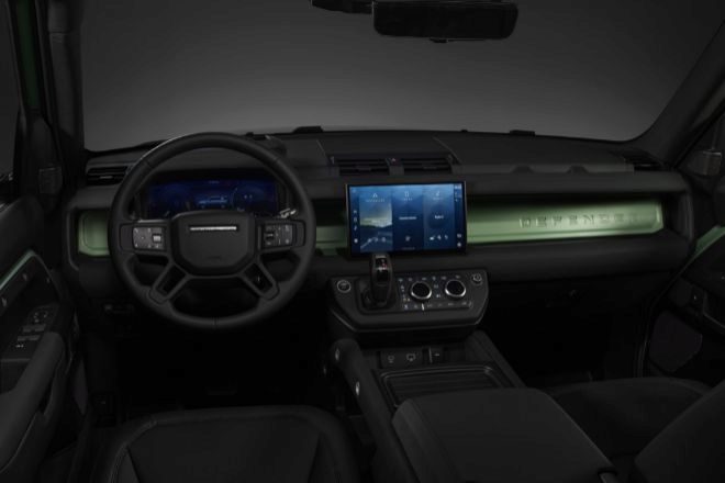 Una de las novedades más atractivas del nuevo Defender es el espectacular color Grasmere Green, tanto en el exterior como en el interior, con un gráfico exclusivo que conmemora los 75 años de Land Rover. Está disponible en las versiones de 90 y 110 de la carrocería. Siguiendo en el terreno estético, entre algunos de sus detalles más llamativos destacan las llantas de aleación de 20 pulgadas en Grasmere Green, con cubiertas centrales a juego, y un paragolpes en Ceres Silver.