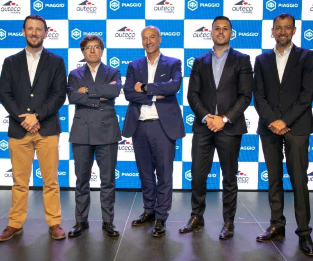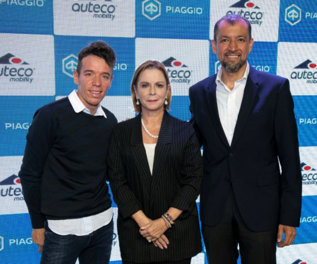 Juan Camilo Escobar, gte. Business Development Auteco Mobility; Vincenzo Scardigno, vp. Vehículos comerciales Grupo Piaggio; Sergio Rubino, vp. senior Mercados Extranjeros Grupo Piaggio.
